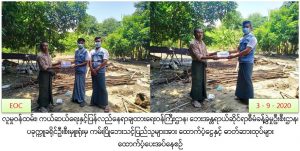လူမှုဝန်ထမ်း၊ ကယ်ဆယ်ရေးနှင့်ပြန်လည်နေရာချထားရေးဝန်ကြီးဌာန၊ ဘေးအန္တရာယ်ဆိုင်ရာစီမံခန့်ခွဲမှုဦးစီးဌာန၊ ပခုက္ကူခရိုင်ဦးစီးမှူးရုံးမှ (၃.၉.၂၀၂၀)ရက်နေ့ မွန်းလွဲ(၁၂း၀၀)နာရီတွင် ပခုက္ကူမြို့နယ်၊ ကျွန်းညိုကြီးကျေးရွာအုပ်စု၊ ကျွန်းညိုကြီး(ကျွန်းညိုရွာသစ်) ကျေးရွာ၌(၃.၉.၂၀၂၀)ရက်နေ့တွင်ဖြစ်ပွားခဲ့သော ဧရာဝတီမြစ်ရေတိုက်စားပြီးကမ်းပါးပြို ကျမှုကြောင့်ကြိုတင်ပြောင်းရွှေ့ ခဲ့ရသော အိမ်ခြေ (၁)လုံး၊ အိမ်ထောင်စု (၁)စုမှ ကျား(၁)ဦး မ(၂)ဦး၊ စုစုပေါင်း(၃)ဦးအတွက် ဆန်ရိက္ခာဖိုး (၇)ရက်စာ (၆၃ဝဝိ/-)နှင့် ပြောင်းရွှေ့အိမ်(၂)လုံးအတွက် အိမ်ဆောက်ပစ္စည်းဖိုး(၁၀၀၀၀ဝိ/-)၊ စုစုပေါင်း(၁၀၆၃ဝဝိ/-)၊ ဓာတ်ဆားထုပ် (၁၀)ထုပ်အား ကျွန်းညိုကြီးကျေးရွာအုပ်စုအုပ်ချုပ်ရေးမှူးနှင့်အတူ ဘေးသင့်ပြည်သူများလက်ဝယ် အရောက်ထောက်ပံ့ပေးအပ်ခဲ့ကြောင်း သတင်းရရှိပါသည်။