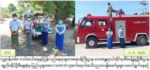 လူမှုဝန်ထမ်း၊ ကယ်ဆယ်ရေးနှင့်ပြန်လည်နေရာချထားရေးဝန်ကြီးဌာန၊ ဘေးအန္တရာယ်ဆိုင်ရာစီမံခန့်ခွဲမှုဦးစီးဌာန၊ ရွှေဘိုခရိုင် ဦးစီးမှူးရုံးမှ တာဝန်ရှိသူများသည် (၃-၉-၂၀၂၀) နေ့ ခင်ဦးမြို့နယ်၊ မြနန္ဒာ၊ အောင်မင်္ဂလာ၊ အောင်ချမ်းသာရပ်ကွက်များနှင့် ကန်သစ်ကျေးရွာ၊ သာဂရကျေးရွာနှင့် ဂွေးကုန်းကျေးရွာတို့တွင် Covid-19 ကူးစက်ရောဂါ ကူးစက်မှူ ဒုတိယလှိုင်းမဖြစ်စေရန် ကြိုတင်ကာကွယ်ရေးနှင့် သဘာဝဘေးအန္တရာယ်ဆိုင်ရာ အသိပညာပေးခြင်းလုပ်ငန်းများ ဆောင်ရွက်ခဲ့ကြောင်း သတင်းရရှိပါသည်။