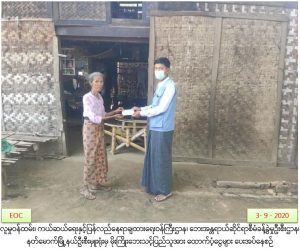 လူမှုဝန်ထမ်း၊ ကယ်ဆယ်ရေးနှင့် ပြန်လည်နေရာချထားရေးဝန်ကြီးဌာန၊ ဘေးအန္တရာယ်ဆိုင်ရာစီမံခန့်ခွဲမှုဦးစီးဌာန၊ နတ်မောက်မြို့နယ်ဦးစီးမှူးရုံးမှတာဝန်ရှိသူများသည် မကွေးတိုင်းဒေသကြီး၊ မကွေးခရိုင်၊ နတ်မောက်မြို့နယ်၊ ရေငံကျေးရွာအုပ်စု၊ ပ/ကျားထူးကျေးရွာတွင် (၁-၉-၂၀၂၀) ရက်နေ့၌ ဖြစ်ပွားခဲ့သော မိုးကြိုးဘေးကြောင့် တစိတ်တပိုင်း ပျက်စီးခဲ့သည့် နေအိမ် (၁)လုံး၊ အိမ်ထောင်စု (၁)စု၊လူ ဦးရေ (၃)ဦးအတွက် အိမ်ဆောက်ပစ္စည်းဖိုး (၅၀၀၀ဝိ/-)၊ ဆန်ရိက္ခာ(၇)ရက်စာရန်ပုံငွေ (၆၃၀ဝိ/-)၊ စုစုပေါင်းရန်ပုံငွေ (၅၆၃၀ဝိ/-)အား (၃-၉-၂၀၂၀) ရက်နေ့ (၁၄:၀၀)နာရီအချိန်တွင် ဘေးသင့်ပြည်သူများ လက်ဝယ်အရောက် ကွင်းဆင်းထောက်ပံ့ပေးအပ်ခဲ့ကြောင်း သတင်းရရှိပါသည်။