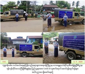 လူမှုဝန်ထမ်း၊ ကယ်ဆယ်ရေးနှင့်ပြန်လည်နေရာချထားရေးဝန်ကြီးဌာန၊ ဘေးအန္တရာယ်ဆိုင်ရာစီမံခန့်ခွဲမှုဦးစီးဌာန၊ ရန်ကုန်တိုင်းဒေသကြီးဦးစီးမှူးရုံးမှ (၆-၉-၂၀၂၀)ရက်နေ့တွင် ရန်ကုန်တောင်ပိုင်းခရိုင်၊ သုံးခွမြို့နယ်၊ အမှတ်(၁)ရပ်ကွက်၊ အမှတ်(၃)ရပ်ကွက်၊ အမှတ်(၇)ရပ်ကွက်၊ အမှတ်(၁၂)ရပ်ကွက်၊ ပုလဲကျေးရွာ၊ ညောင်နီကျေးရွာ၊ ဘုရားကြီးကျေးရွာ၊ ဖရုံကန်ကျေးရွာ၊ ရှမ်းစုကျေးရွာများတွင် Covid19ကူးစက်ဖြစ်ပွားမှု ဒုတိယလှိုင်းမပေါ်ပေါက်စေရေးနှင့်ပတ်သက်၍ အများပြည်သူများသိရှိလိုက်နာနိုင်ရန် ကျန်းမာရေးနှင့်အားကစားဝန်ကြီးဌာနမှ ထုတ်ပြန်ထားသောပြည်သူသို့ အသိပေးပန်ကြားချက်များနှင့် မုန်တိုင်းဘေး၊ ရေဘေးနှင့်စပ်လျဉ်း၍ ဌာနမှထုတ်ပြန်ထားသည့် လက်ကမ်းစာစောင်များပါ အချက်အလက်များ၊ သဘာဝဘေးအသိပညာပေးခြင်းများ ဆောင်ရွက်ခဲ့ကြောင်း သတင်းရရှိပါသည်။