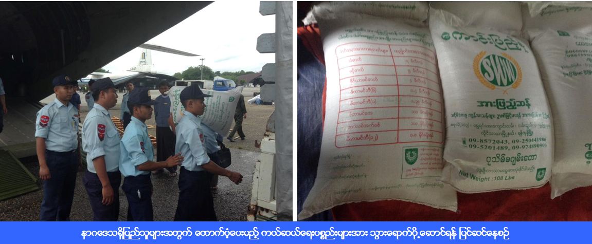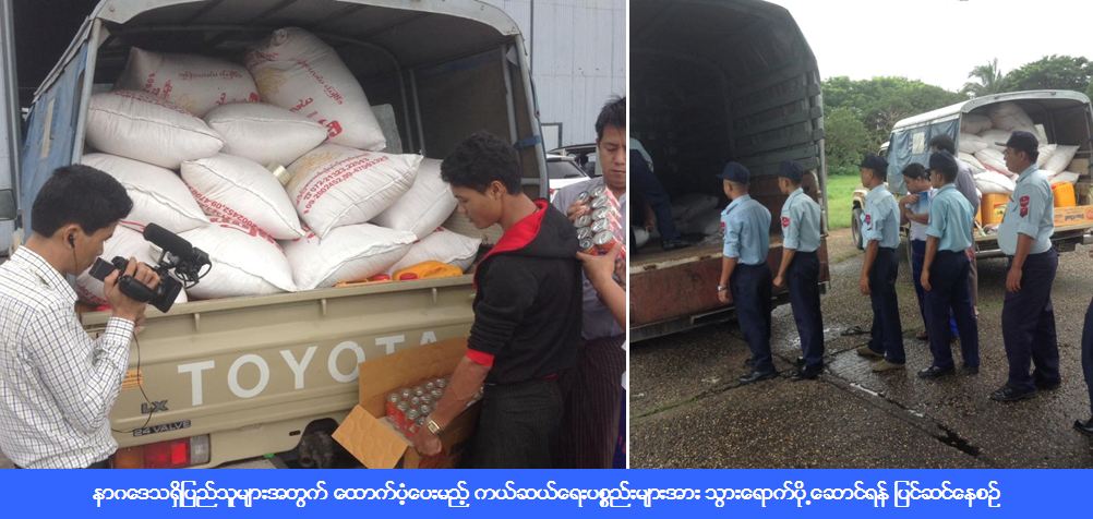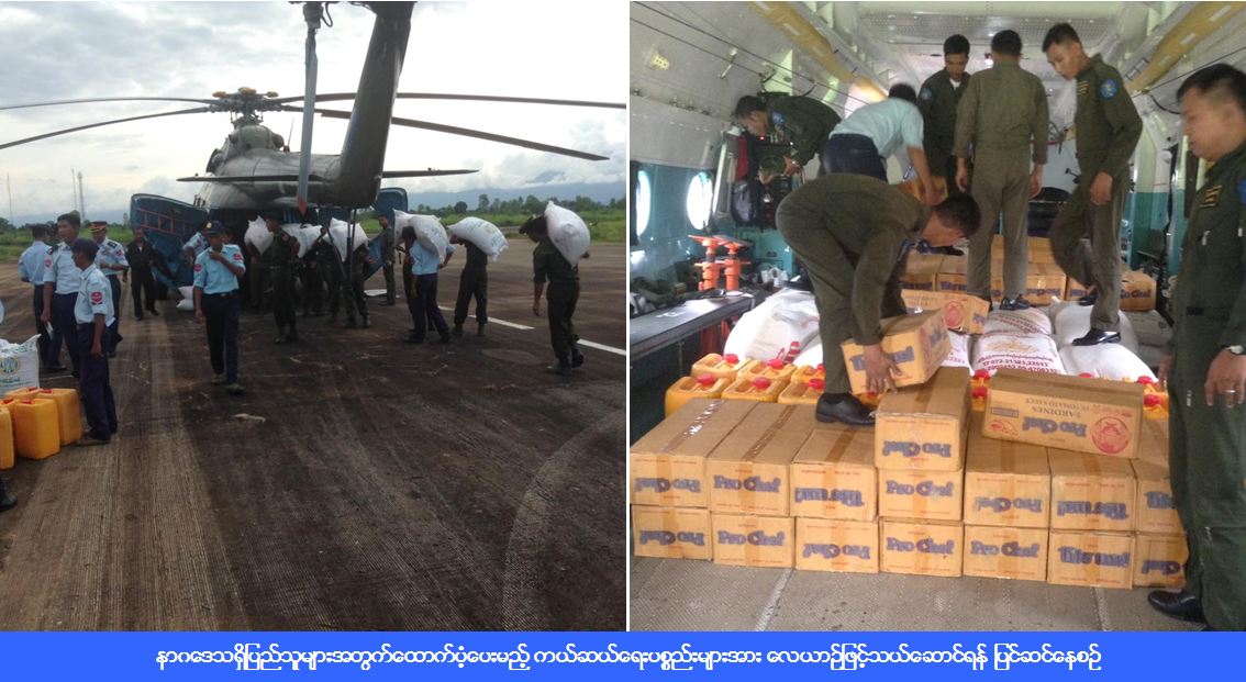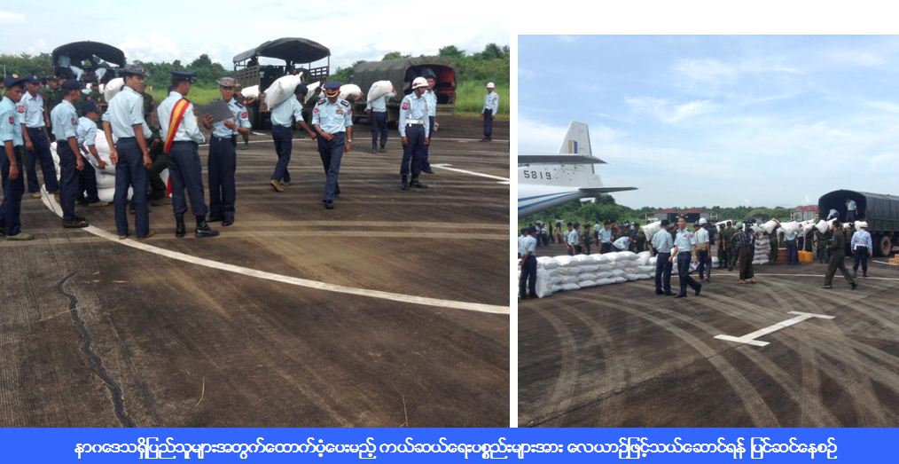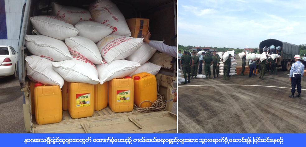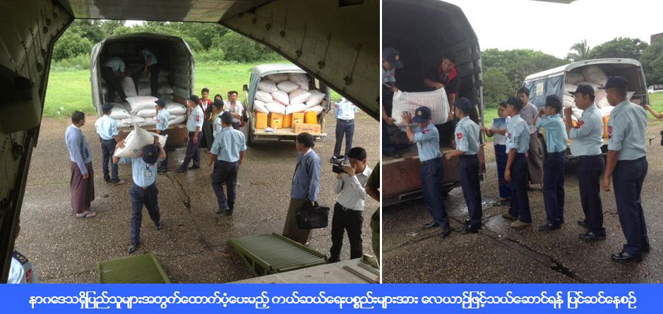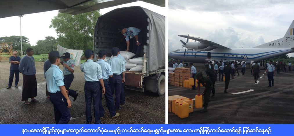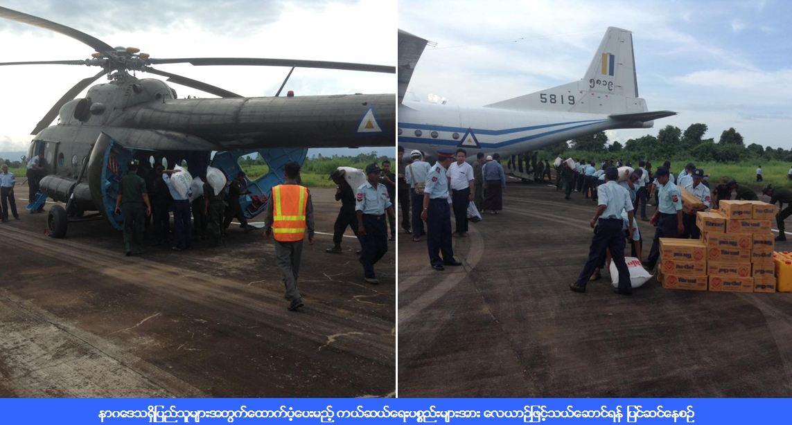 (၁၅-၈-၂၀၁၆) ရက်နေ့တွင် အမျိုးသားသဘာဝဘေး အန္တရာယ်ဆိုင်ရာစီမံခန့်ခွဲမှုကော်မတီ၏ ကြီးကြပ်မှုဖြင့် လူမှုဝန်ထမ်း ၊ကယ်ဆယ်ရေးနှင့် ပြန်လည် နေရာ ချထားရေးဝန်ကြီးဌာန ပြည်ထောင်စု ဝန်ကြီးမှ တပ်မတော် ကာကွယ်ရေး ဦးစီးချုပ်ရုံးနှင့် ညှိနှိုင်းပူးပေါင်း၍ နာဂဒေသရှိပြည်သူများအတွက် အာဟာရဖြည့်ထောက်ပံ့ပေးသည့် အာဟာရဆန် (၁၀၄) အိတ် ၊ ကုလားပဲ (၆၀၀) ပိဿာ ၊ စားဆီ (၂၀၀) ပိဿာ၊ ငါးသေတ္တာ (၃၃၀၀) ဘူးတို့အား တပ်မတော်မှ (Y8) ကုန်တင် လေယာဉ်ဖြင့် တင်ဆောင်၍ ဟုမ္မလင်းမြို့သို့ ယနေ့ (၁၅:၃၀) နာရီအချိန်တွင်ရောက်ရှိခဲ့ပါသည်။ ဟုမ္မလင်းတွင်လည်း တပ်မတော်မှ ရဟတ်ယာဉ် အသင့်စောင့်ဆိုင်းပြီး ပစ္စည်းများသယ်ချ တင်ပြုလုပ်ရန် တပ်မတော်(ကြည်း)၊ တပ်မတော်(လေ) မှ စစ်သည်များအသင့်ထားရှိကာ အာဟာရဆန် (၃၀) အိတ် ၊ကုလားပဲ (၇) အိတ်၊ စားဆီ (၇၀) ပိဿာ၊ ငါးသေတ္တာ (၁၁၀၀) ဘူးတို့အား တင်ဆောင်၍ ခန္တီးမြို့၊ ၎င်းမှ ရာသီဥတုသာယာပါက ယနေ့ လဟယ်မြို့အထိ ဆက်လက် ပို့ဆောင်သွားမည်ဖြစ်ပြီး ရန်ကုန်တိုင်း ဒေသကြီးဦးစီးမှူးရုံးမှ တာဝန်ရှိသူများ လည်း ဟုမ္မလင်း မြို့အထိလိုက်ပါ၍ ဟုမ္မလင်း မြို့နယ်အုပ်ချုပ်ရေးအဖွဲ့သို့ စနစ်တကျ လွဲပြောင်းပေးခဲ့ပါသည်။ ယခု အာဟာရ ဖြည့်ထောက်ပံ့မှုမှာ နာဂဒေသ အတွက် ကနဦးထောက်ပံ့ခြင်းဖြစ်ပြီး ဆက်လက် ၍ထောက်ပံ့မှု လုပ်ငန်းများ လုပ်ဆောင် သွားမည်ဖြစ်ပါကြောင်း သိရှိ ရပါသည်။