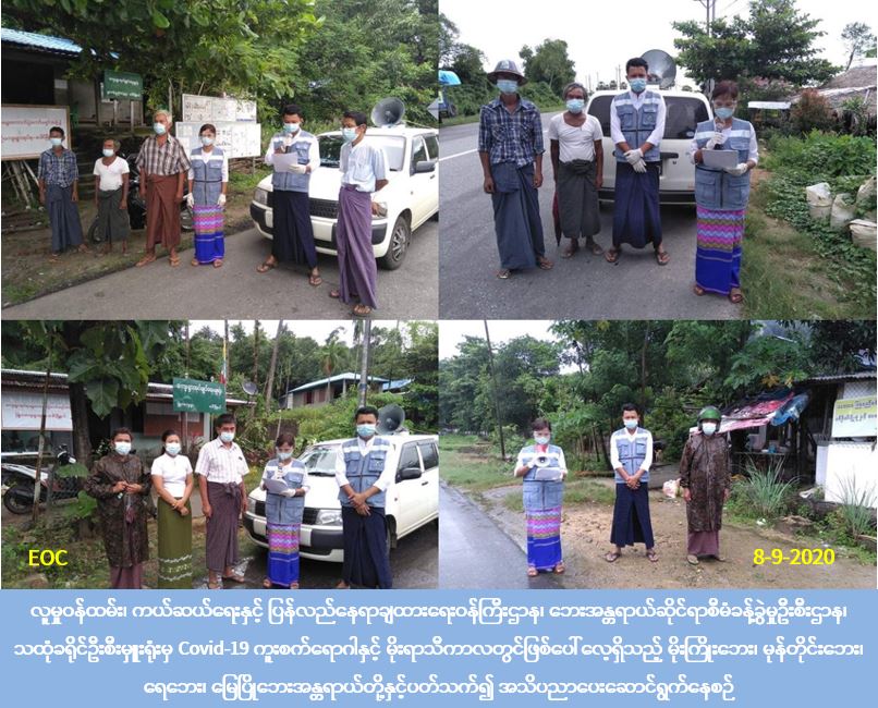 လူမှုဝန်ထမ်း၊ ကယ်ဆယ်ရေးနှင့် ပြန်လည်နေရာချထားရေးဝန်ကြီးဌာန၊ ဘေးအန္တရာယ်ဆိုင်ရာစီမံခန့်ခွဲမှုဦးစီးဌာန၊ သထုံခရိုင်ဦးစီးမှူးရုံးမှ တာဝန်ရှိသူများသည် (၈-၉-၂၀၂၀) ရက်နေ့တွင် (၁၀:၀၀) နာရီအချိန်မှ (၁၄:၀၀) နာရီအချိန်ထိ မွန်ပြည်နယ် သထုံခရိုင် ပေါင်မြို့နယ်၊ ရွာတန်းရှည်ကျေးရွာနှင့် ဖြူဘကျေးရွာတို့တွင် Covid-19 ရောဂါကူးစက်ပျံ့နှံ့မှုများမဖြစ်ပွားစေရေးနှင့် မိုးရာသီကာလအတွင်းဖြစ်ပွားလေ့ရှိသည့် မိုးကြိုးဘေး၊ မုန်တိုင်းဘေး၊ ရေဘေး၊ မြေပြိုဘေးအန္တရာယ်များ ကြိုတင်ပြင်ဆင်ရေး အသိပညာပေးဟောပြောခြင်းအားအသံချဲ့စက်များဖြင့် လည်းကောင်းရေဘေးအန္တရာယ် ကြိုတင်ကာကွယ်ရေး ပြည်သူသို့ အသိပေးနှိုးဆော်ခြင်းအား Handspeaker များဖြင့်လည်းကောင်း အသိပေးနှိုးဆော်ကြေငြာခဲ့ပါကြောင်း သတင်းရရှိပါသည်။