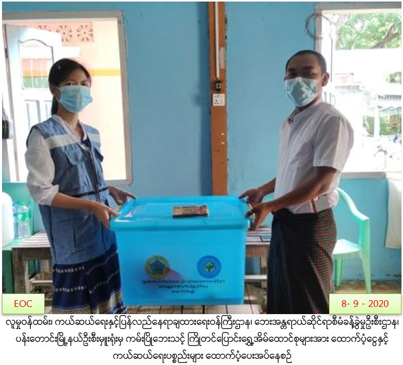 လူမှုဝန်ထမ်း၊ ကယ်ဆယ်ရေးနှင့်ပြန်လည်နေရာချထားရေးဝန်ကြီးဌာန၊ ဘေးအန္တရာယ်ဆိုင်ရာစီမံခန့်ခွဲမှုဦးစီးဌာန၊ ပန်းတောင်းမြို့နယ်ဦးစီးမှူးရုံးမှ တာဝန်ရှိသူများသည် ရေလည်ကျွန်းအုပ်စု၊ အောင်မင်္ဂလာကျေးရွာတွင်(၄.၉.၂၀၂၀)ရက်နေ့ ဧရာဝတီမြစ်ရေတိုက်စားမှုကြောင့် ကြိုတင်ရွှေ့ပြောင်းခဲ့ရသော နေအိမ်(၁)လုံးအတွက် အိမ်ဆောက်ပစ္စည်းဖိုးထောက်ပံ့ငွေ(၁၀၀၀၀ဝိ/-)ကျပ်၊ လူဦးရေ(၅)ဦးအတွက် ဆန်ရိက္ခာဖိုး(၇)ရက်စာ ထောက်ပံ့ငွေ(၁၀၅၀ဝိ/-)ကျပ်၊ ကယ်ဆယ်ရေးပစ္စည်း(၁၀)မျိုး (၁)ပုံးတို့အား (၈.၉.၂၀၂၀)ရက်နေ့ နေ့လည်(၁၃:၃၀)နာရီ အချိန်တွင် ရပ်ကျေးစာရေးနှင့်အတူ ထောက်ပံ့ပေးအပ်ခဲ့ကြောင်း သတင်းရရှိပါသည်။