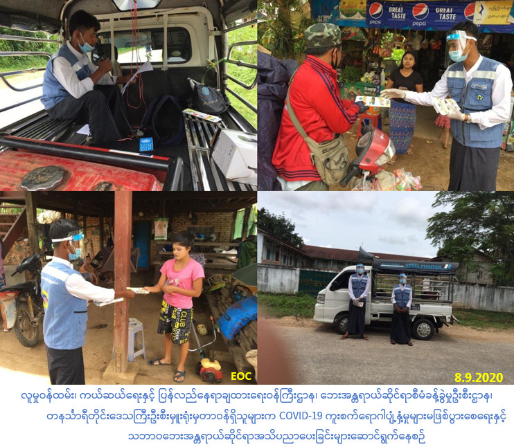 လူမှုဝန်ထမ်း၊ ကယ်ဆယ်ရေးနှင့် ပြန်လည်နေရာချထားရေးဝန်ကြီးဌာန၊ ဘေးအန္တရာယ်ဆိုင်ရာစီမံခန့်ခွဲမှုဦးစီးဌာန၊ တနင်္သာရီတိုင်းဒေသကြီးဦးစီးမှူးရုံးမှတာဝန်ရှိသူများသည် (၈-၉-၂၀၂၀) ရက်နေ့၌ ထားဝယ်မြို့နယ် ညောင်တုန်းကျေးရွာ၊ ကလစ်ကြီးကျေးရွာနှင့် မြေးခံဘော်ကျေးရွာ တို့တွင် ကျန်းမာရေးနှင့်အားကစားဝန်ကြီးဌာနမှ ထုတ်ပြန်ထားသော Covid-19 ကူးစက်မှု ဒုတိယလှိုင်းမဖြစ်စေရန် အသိပညာပေးချက်များ၊ ရာသီအလိုက်ဖြစ်ပွားတတ်သော သဘာဝဘေးအန္တရာယ်များနှင့်ပတ်သက်သည့် ဆောင်ရန်/ ရှောင်ရန်အချက်များအား အသိအညာပေးခြင်းနှင့် ကမ်းစာစောင်များဝေငှခြင်းတို့ကိုလည်း ဆောင်ရွက်ခဲ့ပါကြောင်း သတင်းရရှိပါသည်။