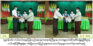 လူမှုဝန်ထမ်း၊ ကယ်ဆယ်ရေးနှင့်ပြန်လည်နေရာချထားရေးဝန်ကြီးဌာန၊ ဘေးအန္တရာယ်ဆိုင်ရာစီမံခန့်ခွဲမှုဦးစီးဌာန၊ ဟင်္သာတခရိုင်ဦးစီးမှူးရုံးမှ တာဝန်ရှိသူများသည် (၈-၉-၂၀၂၀)ရက်နေ့တွင် လေးမျက်နှာမြို့နယ်၊ သောင်ဘုတ်အုပ်စု၊ သောင်ဘုတ်ကျေးရွာနှင့် ဒေါင့်ကြီးအုပ်စု၊ (ဒေါင့်ကြီး၊ ဈေးကလေး) ကျေးရွာတို့တွင် (၇-၉-၂၀၂၀)နေ့ဖြစ်ပွါးသော ကမ်းပြိုဘေးကြောင့် ပျက်စီးခဲ့သော အိမ်ထောင်စု(၁၀)စုအတွက်အိမ်ဆောက် ပစ္စည်းရန်ပုံငွေ (၁၀၀၀၀၀၀ိ/-)၊ လူဦးရေ(၄၀)ဦးအတွက် ဆန်ရိက္ခာ(၇)ရက်စာ (၈၄၀၀၀ိ/-)၊ စုစုပေါင်း ရန်ပုံငွေ (၁၀၈၄၀၀၀ိ/-) အား (၈-၉-၂၀၂၀)ရက်နေ့ (၁၃:၀၀) နာရီအချိန်တွင် သက်ဆိုင်ရာတာဝန်ရှိသူများနှင့်အတူ လေးမျက်နှာမြို့နယ်၊ အထွေထွေအုပ်ချုပ်ရေးဉီးစီးဌာန၌ ဘေးသင့်ပြည်သူများလက်ဝယ်သို့ ထောက်ပံ့ပေးအပ်ခဲ့ကြောင်း သတင်းရရှိပါသည်။