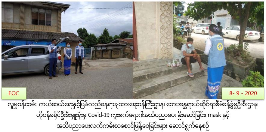 လူမှုဝန်ထမ်း၊ ကယ်ဆယ်ရေးနှင့်ပြန်လည်နေရာချထားရေးဝန်ကြီးဌာန၊ ဘေးအန္တရာယ်ဆိုင်ရာစီမံခန့်ခွဲမှုဦးစီးဌာန၊ ဟိုပန်ခရိုင်ဦးစီးမှူးရုံးမှ တာဝန်ရှိသူများသည် (၈.၉.၂၀၂၀)ရက်နေ့တွင် ဟိုပန်မြို့နယ်၊ ပန်လုံလမ်းရပ်ကွက်နှင့် ဈေးရပ်ကွက်တို့၌ Covid-19 ဒုတိယလှိုင်းကာလအတွင်း ပြည်သူများ လိုက်နာရမည့်ကျန်းမာရေးအမူအကျင့်များ အသိပညာပေးခြင်းနှင့် သဘာဝဘေးဆိုင်ရာ အသိပညာပေးခြင်း၊ Mask နှင့် အသိပညာပေးလက်ကမ်းစာစောင်များ ဖြန့်ပေးဝေခြင်းတို့အား ဆောင်ရွက်ခဲ့ကြောင်း သတင်းရရှိပါသည်။