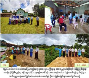 လူမှုဝန်ထမ်း၊ ကယ်ဆယ်ရေးနှင့်ပြန်လည်နေရာချထားရေးဝန်ကြီးဌာန၊ လူမှုဝန်ထမ်းဦးစီးဌာန၊ ပြန်လည်ထူထောင်ရေးဦးစီးဌာနနှင့် ဘေးအန္တရာယ်ဆိုင်ရာစီမံခန့်ခွဲမှုဦးစီးဌာန၊ လားရှိုးခရိုင်ဦးစီးမှူးရုံးမှ တာဝန်ရှိသူများနှင့် အထွေထွေအုပ်ချုပ်ရေးဦးစီးဌာန၊ ကျေးလက်ကျန်းမာရေးဌာနတို့နှင့်ပူးပေါင်း၍ (၉-၉-၂၀၂၀) ရက်နေ့တွင် လားရှိုးမြို့နယ်၊ နမ့်တွန်းကျေးရွာအုပ်စု၊ နမ့်တွန်းရွာ၊ ဘုံမိုရွာ၊ လွယ်ငူရွာ နှင့် နမ့်ဟူးရွာတို့၌ COVID-19 ကူးစက်မှုမဖြစ်ပွားစေရန်ပြည်သူများ လိုက်နာရမည့်ကျန်းမာရေးအမူအကျင့်များ အသိပညာပေးခြင်းနှင့် သဘာဝဘေးဆိုင်ရာအသိပညာပေးခြင်းများကို အသံချဲ့စက်များဖြင့် လှည့်လည်ဟောပြောခဲ့ပြီး Mask နှင့် COVID-19 ကာကွယ်နိုင်ရန် နှာခေါင်းစည်းကို အသုံးပြုခြင်းဆိုင်ရာ အကြံပြုချက်များ၊ နှာခေါင်စည်းကိုအသုံးပြုရာတွင် လိုက်နာရမည့်အချက်များ၊ COVID-19 ကာကွယ်ရေး စနစ်ကျလက်ဆေးပေးပါဝင်သည့် လက်ကမ်းစာစောင်များ ဖြန့်ပေးဝေခြင်း၊ Hand Gelများဖြင့် လက်သန့်စင်ပေးခြင်းတို့အား ဆောင်ရွက်ခဲ့ကြောင်း သတင်းရရှိပါသည်။