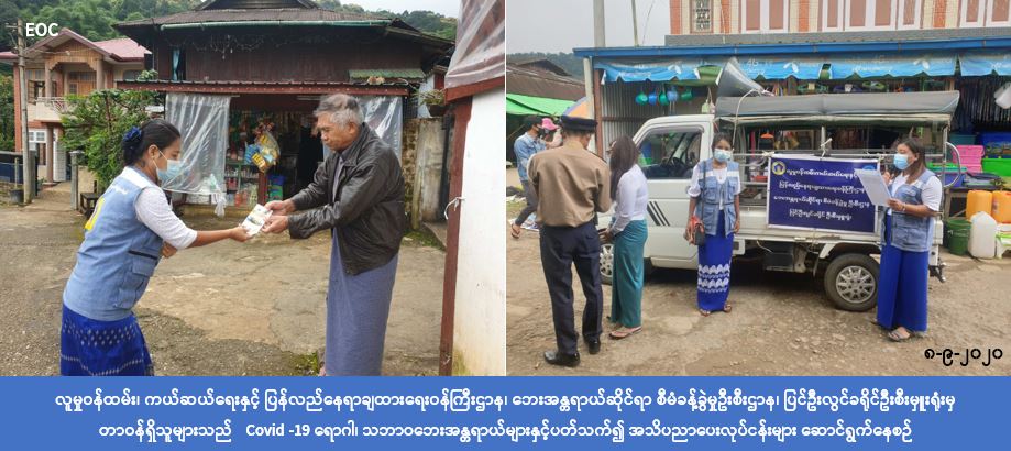 လူမှုဝန်ထမ်း၊ ကယ်ဆယ်ရေးနှင့် ပြန်လည်နေရာချထားရေးဝန်ကြီးဌာန၊ ဘေးအန္တရာယ်ဆိုင်ရာ စီမံခန့်ခွဲမှုဦးစီးဌာန၊ မန္တလေးတိုင်းဒေသကြီးအတွင်းရှိ ပြင်ဦးလွင်ခရိုင်ဦးစီးမှူးရုံးမှ တာဝန်ရှိသူများသည် မိုးကုတ်မြို့နယ်၊ ဖြူရောင်ကျေးရွာ အုပ်စု၊ လယ်ကြီးကျေးရွာအုပ်စုနှင့် ပိန်းပြစ်ကျေးရွာအုပ်စုတို့မှ ကျေးရွာ (၈) ရွာများသို့ (၈-၉-၂၀၂၀) ရက်နေ့တွင် (COVID-19) အသိပညာပေးခြင်းနှင့် မိုးရာသီကာလအတွင်းဖြစ်ပွားတတ်သော သဘာဝဘေးအန္တရာယ်များအကြောင်း အသိပညာ ပေးခြင်းများကို ဆောင်ရွက်ခဲ့ကြောင်း သိရှိရပါသည်။