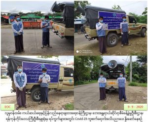 လူမှုဝန်ထမ်း၊ ကယ်ဆယ်ရေးနှင့်ပြန်လည်နေရာချထားရေးဝန်ကြီးဌာန၊ ဘေးအန္တရာယ်ဆိုင်ရာစီမံခန့်ခွဲမှုဦးစီးဌာန၊ ရန်ကုန်တိုင်းဒေသကြီးဦးစီးမှူးရုံးမှ (၉-၉-၂၀၂၀)ရက်နေ့တွင် ရန်ကုန်အရှေ့ပိုင်းခရိုင်၊ ဒဂုံမြို့သစ်(မြောက်ပိုင်း)မြို့နယ်၊ အမှတ်(၄၁)ရပ်ကွက်၊ အမှတ်(၄၂)ရပ်ကွက်၊ အမှတ်(၄၄)ရပ်ကွက်၊ အမှတ်(၄၅)ရပ်ကွက်၊ အမှတ်(၄၇)ရပ်ကွက်၊ အမှတ်(၄၈)ရပ်ကွက်၊ အမှတ်(၄၉)ရပ်ကွက်များတွင် Covid19ကူးစက်ဖြစ်ပွားမှု ဒုတိယလှိုင်းမပေါ်ပေါက်စေရေးနှင့်ပတ်သက်၍ အများပြည်သူများသိရှိလိုက်နာနိုင်ရန် ကျန်းမာရေးနှင့်အားကစားဝန်ကြီးဌာနမှ ထုတ်ပြန်ထားသောပြည်သူသို့ အသိပေးပန်ကြား ချက်များနှင့် မိုးကြိုးဘေး၊ ရေဘေးနှင့်စပ်လျဉ်း၍ ဌာနမှထုတ်ပြန်ထားသည့် လက်ကမ်းစာစောင်များပါအချက်အလက်များ၊ သဘာဝဘေးအန္တရာယ်များနှင့်ပတ်သက်၍ အသိပညာပေးနှိုးဆော်ခြင်းများ ဆောင်ရွက်ခဲ့ကြောင်း သတင်းရရှိပါသည်။