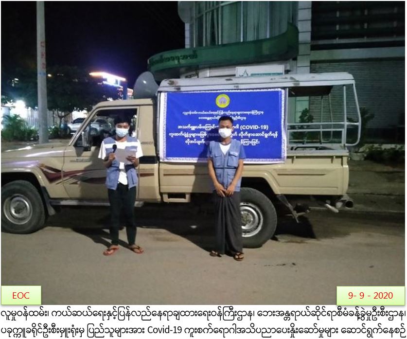 လူမှုဝန်ထမ်း၊ ကယ်ဆယ်ရေးနှင့်ပြန်လည်နေရာချထားရေးဝန်ကြီးဌာန၊ ဘေးအန္တရာယ်ဆိုင်ရာစီမံခန့်ခွဲမှုဦးစီးဌာန၊ ပခုက္ကူခရိုင်ဦးစီးမှူးရုံး မှတာဝန်ရှိသူများသည် (၉.၉.၂၀၂၀)ရက် နေ့ ညနေ (၂၀:၀၀) အချိန်မှ (၂၂:၀၀) အချိန်အထိ ပခုက္ကူမြို့ပေါ်ရပ် ကွက်များဖြစ်သည့် အမှတ်(၁/၂/၃/၄/၅/ ၆/၇/၈/၉/၁၀/၁၁/၁၂/၁၃/၁၄/၁၅) ရပ်ကွက်များတွင် လှည့်လည်၍ covid 19 ရောဂါနှင့်ပတ်သက်၍ ဆောင်ရန်ရှောင်ရန်အချက်များအား အသိပညာပေးနှိုးဆော်ခြင်းများ ဆောင်ရွက်ခဲ့ကြောင်း သတင်းရရှိပါသည်။