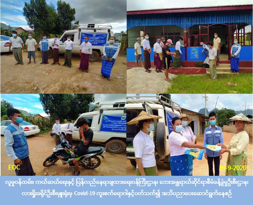လူမှုဝန်ထမ်း၊ ကယ်ဆယ်ရေးနှင့် ပြန်လည်နေရာချထားရေးဝန်ကြီးဌာန၊ ဘေးအန္တရာယ်ဆိုင်ရာစီမံခန့်ခွဲမှုဦးစီးဌာန၊ လားရှိုးခရိုင်ဦးစီးမှူးရုံးမှ တာဝန်ရှိသူများသည် (၁၀-၉-၂၀၂၀) ရက်နေ့တွင် လူမှုဝန်ထမ်းဦးစီးဌာန၊ ပြန်လည်ထူထောင်ရေးဦးစီးဌာန၊ အထွေထွေအုပ်ချုပ်ရေးဦးစီးဌာန၊ ကျေးလက်ကျန်းမာရေးဌာနတို့နှင့်ပူးပေါင်း၍ လားရှိုးမြို့နယ်၊ တာပုံကျေးရွာအုပ်စု၊ တာပုံကျေးရွာ၊ ဝနားဖကျေးရွာနှင့် နားဝကျေးရွာတို့၌ COVID-19 ကူးစက်မှုမဖြစ်ပွားစေရန်ပြည်သူများ လိုက်နာရမည့်ကျန်းမာရေးအမူအကျင့်များ အသိပညာပေးခြင်းနှင့် သဘာဝဘေးဆိုင်ရာအသိပညာပေးခြင်းများကို အသံချဲ့စက်များဖြင့် လှည့်လည်ဟောပြောခဲ့ပြီး Mask နှင့် COVID-19 ကာကွယ်နိုင်ရန် နှာခေါင်းစည်းကို အသုံးပြုခြင်းဆိုင်ရာ အကြံပြုချက်များ၊ နှာခေါင်စည်းကိုအသုံးပြုရာတွင် လိုက်နာရမည့် အချက်များ၊ COVID-19 ကာကွယ်ရေး စနစ်ကျလက်ဆေးပေး ပါဝင်သည့် လက်ကမ်းစာစောင်များ ဖြန့်ပေးဝေခြင်း၊ Hand Gel များဖြင့် လက်သန့်စင်ပေးခြင်းတို့အား ဆောင်ရွက်ခဲ့ပါကြောင်း သတင်းရရှိပါသည်။