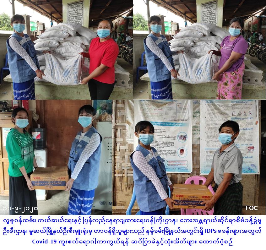 လူမှုဝန်ထမ်း၊ ကယ်ဆယ်ရေးနှင့် ပြန်လည်နေရာချထားရေးဝန်ကြီးဌာန၊ ဘေးအန္တရာယ်ဆိုင်ရာစီမံခန့်ခွဲမှုဦးစီးဌာန၊ မူဆယ်မြို့နယ်ဦးစီးမှူးရုံးမှ တာဝန်ရှိသူများသည် (၁၁-၉-၂၀၂၀) ရက်နေ့တွင် နမ့်ခမ်းမြို့နယ်ရှိ IDPs (Camp)စခန်း (၆)ခုမှ တိုက်ပွဲရှောင်ပြည်သူများအတွက် Covid-19 ကူးစက်ရောဂါကာကွယ်ရာတွင် အသုံးပြုရန်အတွက် စခန်း(၁)ခုလျှင် ထုံးအိတ် (၁၀)အိတ်နှုန်းဖြင့် ထုံးအိတ်(၆၀)အိတ်နှင့် (၁)ဦးလျှင် ဆပ်ပြာခဲ(၄)ခုပါ (၁)တောင့်နှုန်းဖြင့် လူဦးရေ (၁၈၈၆)ဦးအတွက် ဆပ်ပြာတောင့် (၁၈၈၆)တောင့်အား ထောက်ပံ့ပေးအပ်ခဲ့ကြောင်း သတင်းရရှိပါသည်။