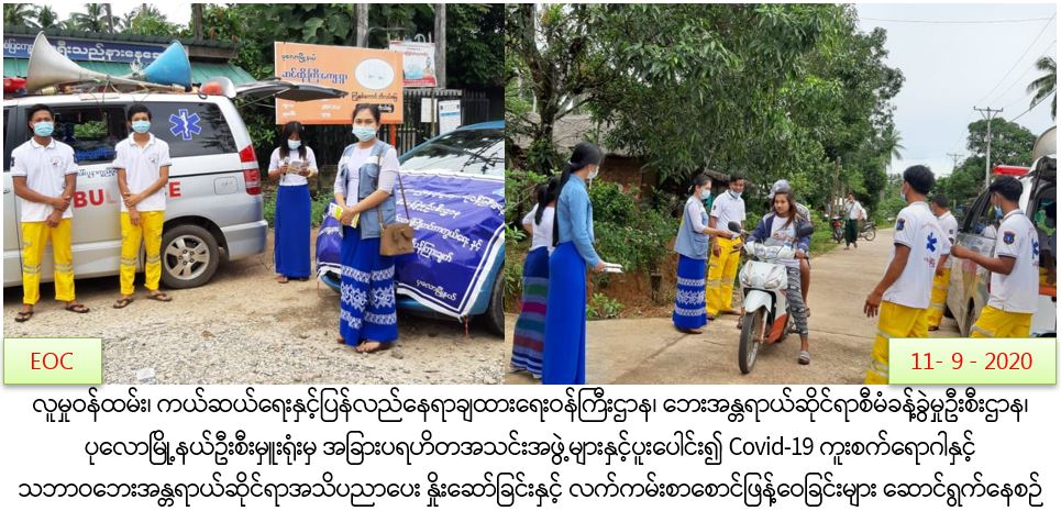 လူမှုဝန်ထမ်း၊ ကယ်ဆယ်ရေးနှင့်ပြန်လည်နေရာချထားရေးဝန်ကြီးဌာန၊ ဘေးအန္တရာယ်ဆိုင်ရာစီမံခန့်ခွဲမှုဦးစီးဌာန၊ ပုလောမြို့နယ်ဦးစီးမှူးရုံးမှ တာဝန်ရှိသူများသည် (၁၁.၉.၂၀၂၀)နေ့ ပုလောမြို့နယ်၊ ဆင်ထိုးကျေးရွာအုပ်စု မှ ရပ်/ကျေးအုပ်ချုပ်ရေးမှူးအဖွဲ့များနှင့် ဟိတကာရီလူမှုကူညီရေး ပရဟိတအသင်းတို့ပူးပေါင်း၍ ဆင်ထိုးကြီး၊ ဆင်ထိုးငယ်၊ ဘုရင့်တောင်၊ အင်းမကျေးရွာတို့တွင် COVID-19 ကူးစက်ရောဂါ( ဒုတိယလှိုင်း) အသက်ရှူလမ်းကြောင်းဆိုင်ရာရောဂါနှင့်ပတ်သက်၍ အများပြည်သူသိရှိလိုက်နာနိုင်ရန် ကျန်းမာရေးနှင့် အားကစားဝန်ကြီးဌာနမှ ထုတ်ပြန်ထားသော အသိပေးကြေငြာချက်များနှင့် မိုးကြိုးဘေး၊ ရေဘေး၊ လေပြင်းဘေး ဆောင်ရန်ရှောင်ရန်များ အသိပညာပေးခြင်းဆော်ဩခြင်း၊ လက်ကမ်းစာစောင်နှင့် ဗီနိုင်းဖြန့်ဝေခြင်းများ ဆောင်ရွက်ခဲ့ကြောင်း သတင်းရရှိပါသည်။