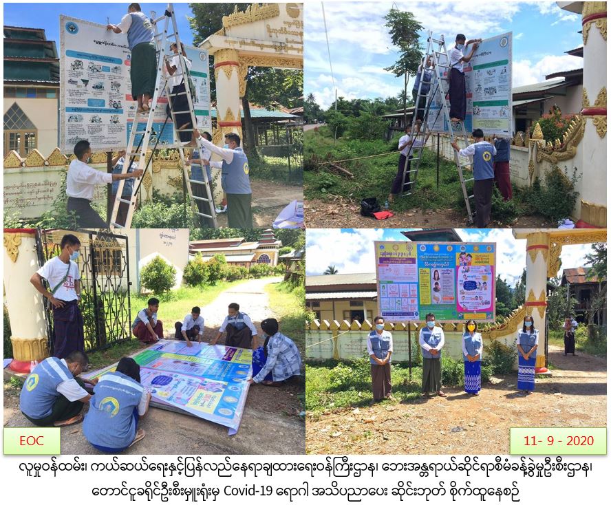 လူမှုဝန်ထမ်း၊ ကယ်ဆယ်ရေးနှင့်ပြန်လည်နေရာချထားရေးဝန်ကြီးဌာန၊ ဘေးအန္တရာယ်ဆိုင်ရာစီမံခန့်ခွဲမှုဦးစီးဌာန၊ တောင်ငူခရိုင်ဦးစီးမှူးရုံးနှင့် ကျောက်ကြီးမြို့နယ်ဦးစီးမှူးရုံးမှ ဝန်ထမ်းများသည် ကျောက်ကြီးမြို့နယ်အတွင်း COVID-19 ကူးစက်မှု ဒုတိယလှိုင်းမဖြစ်စေရန်နှင့် ပြည်သူများအကြား COVID-19 ရောဂါနှင့်ပတ်သက်၍ အသိပညာပိုမိုတိုးပွားစေရန်အတွက် (၁၁-၉-၂၀၂၀) ရက်နေ့တွင် ကျောက်ကြီးမြို့နယ်၊ ပဲခူးရပ်ကွက်တွင် စိုက်ထူထားသော ရေဘေးအသိပညာပေး ဗီနိုင်းအစား COVID-19 ရောဂါ အသိပညာပေးဗီနိုင်းဖြင့် လဲလှယ်စိုက်ထူပေးခဲ့ကြောင်း သတင်းရရှိပါသည်။