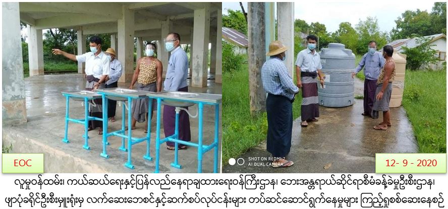 လူမှုဝန်ထမ်း၊ ကယ်ဆယ်ရေးနှင့်ပြန်လည်နေရာချထားရေးဝန်ကြီးဌာန၊ ဘေးအန္တရာယ်ဆိုင်ရာစီမံခန့်ခွဲမှုဦးစီးဌာန၊ ဖျာပုံခရိုင်ဦးစီးမှူးရုံးမှ (၁၂-၉-၂၀၂၀)ရက်နေ့ ဖျာပုံမြိုနယ်၊ ဒေါ်ညိမ်းကျေးရွာအုပ်စု ဒေါ်ညိမ်းကျေးရွာ၊ ဒေါ်ညိမ်း Cyclone Shelter အား Covid-19 ရောဂါဖြစ်ပွားစဥ်ကာလအတွင်း Facility Quarantine Center အဖြစ် အသုံးပြုခဲ့သည့်အတွက် လက်ဆေးဘေစင်နှင့် ဆက်စပ်လုပ်ငန်းများ တပ်ဆင်ဆောင်ရွက်နေမှုများအား ကြည့်ရှုစစ်ဆေးခဲ့ကြောင်း သတင်းရရှိပါသည်။