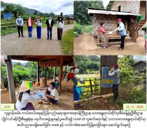လူမှုဝန်ထမ်း၊ ကယ်ဆယ်ရေးနှင့်ပြန်လည်နေရာချထားရေးဝန်ကြီးဌာန၊ ဘေးအန္တရာယ်ဆိုင်ရာစီမံခန့်ခွဲမှုဦးစီးဌာန၊ လွိုင်လင်ခရိုင်ဦးစီးမှူးရုံးမှ တာဝန်ရှိသူများသည် လွိုင်လင်covid-19ရောဂါ ကာကွယ်ရန်အကူအညီပေးရေးအဖွဲ့၊ မေတ္တာလွမ်းခြုံလွှာ လူမူကူညီရေးအဖွဲ့ တို့နှင့်ပူးပေါင်း၍ Covid-19 ကူးစက်ရောဂါ ဒုတိယလှိုင်းကာလအတွင်း ပြည်တွင်းကူးစက်ပျံ့ပွားမှု ကြိုတင်ကာကွယ်ရေးအတွက် (၁၂.၉.၂၀၂၀)ရက်နေ့၊ နံနက်(၉းဝဝ) နာရီမှနေ့လည်(၁၂းဝဝ)ထိ လွိုင်လင်မြို့နယ်၊ ဟွေးတောက်ကျေးရွာအုပ်စု၊ စင်းခမ်းကျေးရွာနှင့် ကျိုင်းခမ်းကျေးရွာ၌ Covid-19 ကူးစက်ရောဂါကြိုတင်ကာကွယ်ရေး အသိပညာပေးခြင်း၊ သဘာဝဘေးအန္တရာယ်အကြောင်းများ နှင့် ရှောင်ရန်/ဆောင်ရန် စသည်များအား ပအိုဘာသာ၊ ရှမ်းဘာသာ၊ မြန်မာဘာသာဖြင့်လှည့်လည်ဆော်သြပြီး ပါးစပ်နှင့် နှာခေါင်းစည်း(mask)များဖြန့်ဝေခြင်း၊ Covid-19 အသိပညာပေး လက်ကမ်းစာစောင်များဖြန့်ဝေခြင်း၊ သဘာဝဘေးအန္တရာယ်ဆိုင်ရာ ရှောင်ရန်/ဆောင်ရန်လက်ကမ်းစာစောင်များဖြန့်ဝေခြင်း၊ ပိုစတာများကပ်ခြင်း/ ဖြန့်ဝေခြင်း ဗွီနှိုင်းများကပ်ခြင်း ဆောင်ရွက်ခဲ့ကြောင်း သတင်းရရှိပါသည်။