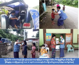 လူမှုဝန်ထမ်း၊ ကယ်ဆယ်ရေးနှင့် ပြန်လည်နေရာချထားရေးဝန်ကြီးဌာန၊ ဘေးအန္တရာယ်ဆိုင်ရာစီမံခန့်ခွဲမှုဦးစီး ဌာန၊ မိုင်းဖြတ်မြို့နယ်ဦးစီးမှူးရုံးမှ တာဝန်ရှိသူများသည် (၁၃-၉-၂၀၂၀) ရက်နေ့၊ နံနက်(၁၀:၀၀)နာရီအချိန်မှစ၍ မိုင်းဖြတ်မြို့နယ်ရှိ တာကျောက်ကျေးရွာနှင့် ဆွပ်ပလောင်းကျေးရွာတို့တွင် (Covid-19) ရောဂါ ဒုတိယလှိုင်း ကူးစက်ပြန့်ပွားမှုမဖြစ်ပွားစေရန်အတွက် ကျေးရွာပြည်သူများအား (Covid-19) ရောဂါနှင့်ပတ်သက်သော ကျန်းမားရေးအမူအကျင့်များ၊ လိုက်နာဆောင်ရွက်ရမည့် စည်းကမ်းချက်များနှင့် သဘာဝဘေးအန္တရာယ်ဆိုင်ရာ အသိပညာတို့အား အသံချဲ့စက်အသုံးပြု၍ ကျေးရွာပြည်သူများ သိရှိလိုက်နာနိုင်ရန် အသိပညာပေးခြင်းနှင့် (Covid-19) အသိပညာပေးလက်ကမ်းစာစောင်များ၊ သဘာဝဘေးအသိပညာပေးလက်ကမ်းစာစောင်များ၊ Mask များ၊ လက်ဆေးဆပ်ပြာများ ဖြန့်ဝေပေးခြင်းတို့ဆောင်ရွက်ခဲ့ကြောင်း သိရှိရပါသည်။