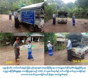 လူမှုဝန်ထမ်း၊ ကယ်ဆယ်ရေးနှင့် ပြန်လည်နေရာချထားရေးဝန်ကြီးဌာန၊ ဘေးအန္တရာယ် ဆိုင်ရာစီမံခန့်ခွဲမှုဦးစီးဌာန၊ လပွတ္တာခရိုင်ဦးစီးမှူးရုံးမှ တာဝန်ရှိသူများသည် အထွေထွေ အုပ်ချုပ်ရေးဦးစီးဌာနနှင့် အတူပူးပေါင်း၍ (၁၄-၉-၂၀၂၀)ရက်နေ့၊ (၀၈:၀၀) နာရီအချိန်မှစ၍ လပွတ္တာမြို့နယ်၊ ကသပေါင်းကျေးရွာအုပ်စု၊ ကသပေါင်းရွာမကျေးရွာ၊ တောင်တန်းကြီး ကျေးရွာ၊ ချောင်းဝကျေးရွာ၊ ကန်ချောင်းကျေးရွာနှင့် အောင်ကုန်းကျေးရွာများတို့တွင် (ဒုတိယအကြိမ်) Covid-19 အသက်ရှူလမ်းကြောင်းဆိုင်ရာရောဂါနှင့် ပတ်သက်၍ ကျန်းမာရေးနှင့်အားကစား၀န်ကြီးဌာနမှ ထုတ်ပြန်ထားသည့် အသိပေးကြေညာချက်များ၊ သဘာဝဘေးအန္တရာယ်ဆိုင်ရာအသိပညာပေးခြင်း၊ လက်ကမ်းစာစောင်များဝေငှခြင်းများကို အများပြည်သူများသိရှိလိုက်နာရန်ကွင်းဆင်း၍ Loud Speaker ဖြင့်လှည့်လှည်၍ အသိပညာပေးလုပ်ငန်းများ ပြုလုပ်ဆောင်ရွက်ခဲ့ကြောင်း သတင်းရရှိပါသည်။