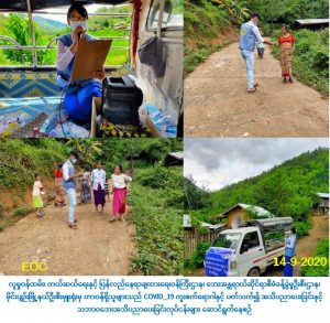 လူမှုဝန်ထမ်း၊ ကယ်ဆယ်ရေးနှင့် ပြန်လည်နေရာချထားရေးဝန်ကြီးဌာန၊ ဘေးအန္တရာယ် ဆိုင်ရာစီမံခန့်ခွဲမှုဦးစီးဌာန၊ မိုင်းပျဉ်းမြို့နယ်ဦးစီးမှူးရုံးမှ တာဝန်ရှိသူများသည် (၁၄-၉-၂၀၂၀) ရက်နေ့၊ မနက်(၈:၀၀) နာရီအချိန်မှစ၍ မိုင်းပျဉ်းမြို့နယ်အတွင်းရှိ ပန်တောင်ရွာ၊ ပါထားကွဲ ရွာနှင့် ခုန်နားကျောင်းရွာတို့၌ Covid-19 ဒုတိယလှိုင်းမဖြစ်စေရန် ပြည်သူများလိုက်နာရမည့် ကျန်းမာရေးအမူအကျင့်များ အသိပညာပေးခြင်းနှင့် သဘာဝဘေးဆိုင်ရာအသိပညာပေး ခြင်းများကို Hand Speaker အသံချဲ့စက်များဖြင့် လှည့်လည်ဟောပြောခြင်း၊ Mask နှင့် အသိပညာပေးလက်ကမ်းစာစောင်များ ဖြန့်ဝေပေးခြင်းလုပ်ငန်းတို့ကို ဆောင်ရွက်ခဲ့ကြောင်း သတင်းရရှိပါသည်။