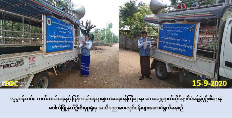 လူမှုဝန်ထမ်း၊ ကယ်ဆယ်ရေးနှင့် ပြန်လည်နေရာချထားရေးဝန်ကြီးဌာန၊ ဘေးအန္တရာယ်ဆိုင်ရာ စီမံခန့်ခွဲမှုဦးစီးဌာန၊ ပေါက်မြို့နယ်ဦးစီးမှူးရုံးမှ တာဝန်ရှိသူများသည် (၁၅-၉-၂၀၂၀) ရက်နေ့ တွင် ပေါက်မြို့နယ်၊ တောင်ချိုကျေးရွာ၊ ဒေါင်းသာကျေးရွာနှင့် သပွတ်စုကျေးရွာတို့တွင် Covid-19 ကူးစက်ရောဂါကြိုတင်ကာကွယ်ရေးနှင့် ဆောင်ရန်/ရှောင်ရန်အချက်များကို အသိပညာပေး နှိုးဆော်မှုများ ပြုလုပ်ဆောင်ရွက်ခဲ့ကြောင်း သတင်းရရှိပါသည်။