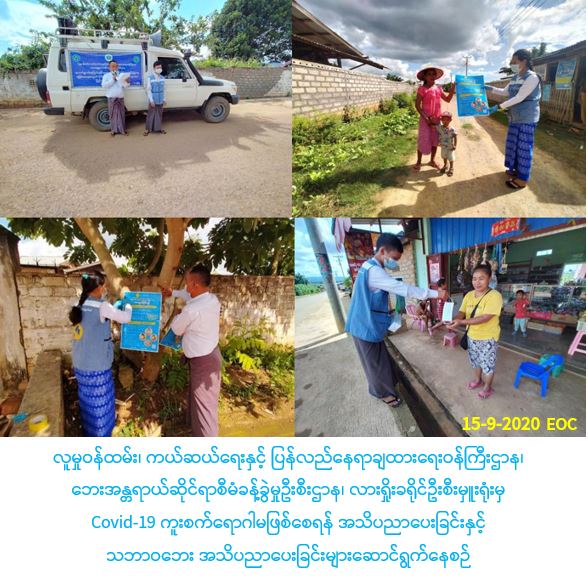 လူမှုဝန်ထမ်း၊ ကယ်ဆယ်ရေးနှင့် ပြန်လည်နေရာချထားရေးဝန်ကြီးဌာန၊ ဘေးအန္တရာယ်ဆိုင်ရာစီမံခန့်ခွဲမှုဦးစီးဌာန၊ လားရှိုးခရိုင်ဦးစီးမှူးရုံးမှ တာဝန်ရှိသူများသည် (၁၅-၉-၂၀၂၀) ရက်နေ့တွင် အထွေထွေအုပ်ချုပ်ရေးဦးစီးဌာနနှင့် ပူးပေါင်း၍ လားရှိုးမြို့နယ်၊ ကောင်းကြဲ(ပိတ်)ကျေးရွာအုပ်စု၊ ဖိုင်လုံကျေးရွာနှင့် နားမွန်းကျေးရွာနှင့် ကုန်းစုံကျေးရွာတို့၌ COVID-19 ကူးစက်မှုမဖြစ်ပွားစေရန် ပြည်သူများ လိုက်နာရမည့် ကျန်းမာရေးအမူအကျင့်များ အသိပညာပေးခြင်းနှင့် သဘာဝဘေးဆိုင်ရာအသိပညာပေးခြင်းများကို အသံချဲ့စက်များဖြင့် လှည့်လည်ဟောပြောခဲ့ပြီး လက်ကမ်းစာစောင်များ ဖြန့်ပေးဝေခြင်း၊ Hand Gel များဖြင့် လက်သန့်စင်ပေးခြင်း၊ အပူချိန်တိုင်းကိရိယာဖြင့် ကိုယ်အပူချိန်တိုင်းပေးခြင်းတို့အား ဆောင်ရွက်ခဲ့ပါကြောင်းသတင်းရရှိပါသည်။