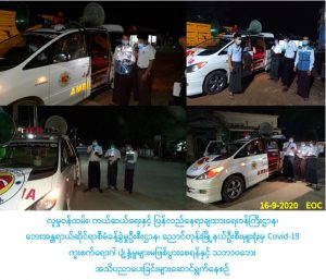 လူမှုဝန်ထမ်း၊ ကယ်ဆယ်ရေးနှင့် ပြန်လည်နေရာချထားရေးဝန်ကြီးဌာန၊ ဘေးအန္တရာယ်ဆိုင်ရာစီမံခန့်ခွဲမှုဦးစီးဌာန၊ ညောင်တုန်းမြို့နယ်ဦးစီးမှူးရုံးမှ တာဝန်ရှိသူများသည် (၁၆-၉-၂၀၂၀) ရက်နေ့ ည (၀၈:၀၀) နာရီအချိန်၌ ပြန်ကြားရေးနှင့်ပြည်သူ့ ဆက်ဆံရေးဦးစီးဌာန၊ နာရေးကူညီမှုအသင်း (ညောင်တုန်း) တို့နှင့်ပူးပေါင်း၍ ညောင်တုန်းမြို့၊ ရပ်ကွက် (၁၀) ခုအတွင်း လမ်းဆုံနေရာများနှင့် လူစည်ကားရာနေရာများ၌ Covid-19 ရောဂါ ကြိုတင်ကာကွယ်ရေးအတွက် ကျန်းမာရေးနှင့် အားကစားဝန်ကြီးဌာနမှ ထုတ်ပြန်ထားသော ရောဂါ ကြိုတင်ကာကွယ် ထိန်းချုပ်ရေးညွှန်ကြားချက်များအား အများပြည်သူများ သိရှိနိုင်စေရန် လှည့်လည်ကြေညာပေးခဲ့ပါကြောင်း သတင်းရရှိပါသည်။