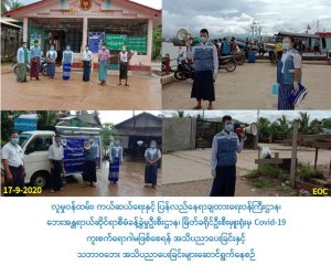 လူမှုဝန်ထမ်း၊ ကယ်ဆယ်ရေးနှင့် ပြန်လည်နေရာချထားရေးဝန်ကြီးဌာန၊ ဘေးအန္တရာယ်ဆိုင်ရာစီမံခန့်ခွဲမှုဦးစီးဌာန၊ မြိတ်ခရိုင်ဦးစီးမှူးရုံးမှ တာဝန်ရှိသူများသည် (၁၇-၉-၂၀၂၀) ရက်နေ့တွင် ကျွန်းစုမြို့နယ်၊ ပထော်ကျေးရွာ၊ ပထက်ကျေးရွာ တို့တွင် COVID-19 ကူးစက်ရောဂါ မဖြစ်စေရေးအတွက် အများပြည်သူသိရှိလိုက်နာနိုင်ရန် ကျန်းမာရေးနှင့် အားကစားဝန်ကြီး ဌာနက ထုတ်ပြန်ထားသော အသိပေးကြေငြာချက်များနှင့် မိုးကြိုးဘေး၊ ရေဘေးနှင့် လေပြင်းဘေး ဆောင်ရန်/ရှောင်ရန်အချက် များကို အသိပညာပေးခြင်း၊ Mask များအားဝေငှခဲ့ပါကြောင်း သတင်းရရှိပါသည်။
