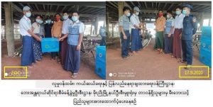 မှုဝန်ထမ်း၊ ကယ်ဆယ်ရေးနှင့် ပြန်လည်နေရာချထားရေးဝန်ကြီးဌာန၊ ဘေးအန္တရာယ်ဆိုင်ရာစီမံခန့်ခွဲမှုဦးစီးဌာန၊ မိုးညိုမြို့နယ်ဦးစီးမှူးရုံးမှ တာဝန်ရှိသူများသည် (၁၇-၉-၂၀၂၀)ရက်နေ့၌ ပဲခူးတိုင်းဒေသကြီး၊ သာယာဝတီခရိုင်၊ မင်းလှမြို့နယ်၊ ထန်းပင်ကုန်းကျေးရွာအုပ်စု၊ ချေါင်းနက်ကျေးရွာတွင် ဖြစ်ပွားခဲ့သော မီးဘေးမှ မီးဘေးသင့်ပျက်စီးနေအိမ်(၅)လုံးတို့အတွက် အိမ်ဆောက်ပစ္စည်းဖိုးထောက်ပံ့ငွေ (၅၀၀၀၀၀)ကျပ်၊ အိမ်ထောင်စု(၅)စုရှိ လူဦးရေ(၂၂)ဦးတို့အတွက် ဆန်ရိက္ခါ(၇)ရက်စာဖိုးထောက်ပံငွေ (၄၆၂၀၀)ကျပ်၊ စုစုပေါင်းထောက်ပံငွေ(၅၄၆၂၀၀)ကျပ်နှင့် ကယ်ဆယ်ရေးပစ္စည်း (၁၉)မျိုး(၅)အိမ်ထောင်စာတို့အား (၁၇-၉-၂၀၂၀)ရက်နေ့ (၁၄:၃၀)နာရီအချိန်တွင် ဘေးသင့်နေအိမ်၌ အမျိုးသားလွှတ်တော်ကိုယ်စားလှယ်၊ မင်းလှမြို့နယ်အထွေထွေအုပ်ချုပ်ရေးဦးစီးဌာနမှ တာဝန်ရှိသူများ ၊ မြို့နယ်မီးသတ်တပ်ဖွဲ့ဝင်များ၊ မြို့နယ်ရဲတပ်ဖွဲ့မှတာဝန်ရှိသူများ၊မြို့နယ်လူငယ်ရေးရာအတွင်းရေးမှူး၊ ကျေးရွာအုပ်ချုပ်ရေးမှူးနှင့်အတူ ပြည်သူလက်ဝယ်အရောက် ထောက်ပံ့ပေးအပ်ခဲ့ပါကြောင်း သတင်းရရှိပါသည်။