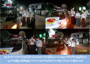 လူမှုဝန်ထမ်း၊ ကယ်ဆယ်ရေးနှင့် ပြန်လည်နေရာချထားရေးဝန်ကြီးဌာန၊ ဘေးအန္တရာယ်ဆိုင်ရာစီမံခန့်ခွဲမှုဦးစီးဌာန၊ ညောင်တုန်းမြို့နယ်ဦးစီးမှူးရုံးမှ တာဝန်ရှိသူများသည် ပြန်ကြားရေးနှင့်ပြည်သူ့ဆက်ဆံရေးဦးစီးဌာန၊ နာရေးကူညီမှုအသင်း (ညောင်တုန်း) တို့ပူးပေါင်း၍ (၁၇-၉-၂၀၂၀) ရက်နေ့ ည (၈:၀၀) နာရီအချိန်၌ ညောင်တုန်းမြို့၊ ရပ်ကွက် (၁၀) ခုအတွင်းလမ်းဆုံနေရာများနှင့် လူစည်ကားရာနေရာများ၌ Covid-19 ရောဂါ ကြိုတင်ကာကွယ်ရေးအတွက် ကျန်းမာရေးနှင့်အားကစားဝန်ကြီးဌာနမှ ထုတ်ပြန်ထားသော ရောဂါကြိုတင်ကာကွယ် ထိန်းချုပ်ရေးညွှန်ကြားချက်များအား အများပြည်သူများ သိရှိနိုင်စေရန် လှည့်လည်ကြေညာပေးခဲ့ပါကြောင်း သတင်းရရှိပါသည်။