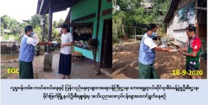 လူမှုဝန်ထမ်း၊ ကယ်ဆယ်ရေးနှင့် ပြန်လည်နေရာချထားရေးဝန်ကြီးဌာန၊ ဘေးအန္တရာယ်ဆိုင်ရာ စီမံခန့်ခွဲမှုဦးစီးဌာန၊ မိုင်းဖြတ်မြို့နယ်ဦးစီးမှူးရုံးမှ တာဝန်ရှိသူများသည်(၁၈-၉-၂၀၂၀) ရက်နေ့၊ နံနက် (၉:၃၀) နာရီအချိန်မှစတင်၍ မြို့နယ်ပြန်ဆက်ဦးစီးဌာန၊ မြို့နယ်တိကုဦးစီးဌာန တို့နှင့်ပူးပေါင်း၍ မိုင်းဖြတ်မြို့နယ်ရှိ တာလကျေးရွာနှင့် နမ့်ခမ်းကျေးရွာတို့ရှိ ပြည်သူများ အား Covid-19 ကူးစက်ရောဂါနှင့်ပတ်သတ်သော ကျန်းမားရေးအမူအကျင့်များ၊ လိုက်နာ ဆောင်ရွက်ရမည့် စည်းကမ်းချက်များ၊ Mask စနစ်တကျတပ်ဆင်ခြင်း၊ လက်စနစ်တကျ လက်ဆေးခြင်းတို့နှင့် သဘာဝဘေးအန္တရာယ်ဆိုင်ရာအသိပညာပေးခြင်းများကို အသံချဲ့စက် အသုံးပြု၍ အသိပညာပေးခြင်းနှင့် Covid-19 အသိပညာပေးလက်ကမ်းစာစောင်များ၊ သဘာဝဘေးအသိပညာပေး လက်ကမ်းစာစောင်များ၊ Mask များ၊ လက်ဆေးဆပ်ပြာများ ဖြန့်ဝေခဲ့ကြောင်း သတင်းရရှိပါသည်။
