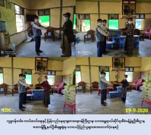 လူမှုဝန်ထမ်း၊ ကယ်ဆယ်ရေးနှင့် ပြန်လည်နေရာချထားရေးဝန်ကြီးဌာန၊ ဘေးအန္တရာယ်ဆိုင်ရာ စီမံခန့်ခွဲမှုဦးစီးဌာန၊ ဖားကန့်မြို့နယ်ဦးစီးမှူးရုံးမှ တာဝန်ရှိသူများသည် (၈-၉-၂၀၂၀)ရက်နေ့တွင် ဆိပ်မူကျေးရွာအုပ်စု၊ ဝှေါခါကျေးရွာစုပေါင်းလုပ်ကွက်အတွင်း၌ ဖြစ်ပွားခဲ့သော မြေလွှာလျှော ကျမှုကြောင့် သေဆုံးသူ(၁)ဦးအတွက်ထောက်ပံ့ငွေ(၃၀၀,၀၀၀/-)ကျပ်၊ ဒဏ်ရာရာသူ(၁)ဦး အတွက်(၅၀,၀၀၀/-)ကျပ် အားလည်းကောင်း၊ (၁၆-၉-၂၀၂၀)ရက်နေ့၊ ဆိပ်မူကျေးရွာအုပ်စု၊ ဝှေခါကျေးရွာရှိ မှော်တောင်းရပ်ကွက်နှင့် မှော်သစ်ကုန်းရပ်ကွက်တို့တွင် မိုးသည်းထန်စွာ ရွာသွန်း၍ ကမ်းပါးယံမြေများရေနှင့်အတူမျောလာပြီး နေအိမ်များ ပြိုကျပျက်စီးမှုကြောင့် ဘေးသင့်အိမ်ထောင်စု(၈)စု၊ လူဦးရေ (၂၅) ဦးတို့အတွက် ကယ်ဆယ်ရေး ပစ္စည်း(၁၇)မျိုးပါ ပုံး (၈)ပုံး၊ အိမ်ဆောက်တန်ဖိုးငွေ(၈၀၀,၀၀၀/-)ကျပ်နှင့်(၇)ရက်စာဆန်ဖိုးငွေ (၅၂,၅၀၀/-)ကျပ်၊ စုစုပေါင်း ထောက်ပံ့ငွေ(၁,၂၀၂,၅၀၀/-)ကျပ်အား (၁၉-၉-၂၀၂၀)ရက်နေ့၊ (၁၃:၄၅)နာရီအချိန်တွင် ဘေးသင့်ပြည်သူထံ လက်ဝယ်အရောက် သွားရောက်ထောက်ပံ့ ပေးခဲ့ပါကြောင်း သတင်းရှိရပါသည်။
