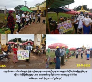 လူမှုဝန်ထမ်း၊ ကယ်ဆယ်ရေးနှင့် ပြန်လည်နေရာချထားရေးဝန်ကြီးဌာန၊ ဘေးအန္တရာယ်ဆိုင်ရာ စီမံခန့်ခွဲမှုဦးစီးဌာန၊ လွိုင်လင်ခရိုင်ဦးစီးမှူးရုံးမှ တာဝန်ရှိသူများသည် Loi Kham Women Organization အဖွဲ့နှင့်ပူးပေါင်း၍ Covid-19 ကူးစက်ရောဂါ ဒုတိယလှိုင်း ကာလအတွင်း ပြည်တွင်းကူးစက်ပျံ့ပွားမှု ကြိုတင်ကာကွယ်ရေးအတွက် (၁၉-၉-၂၀၂၀)ရက်နေ့၊ နံနက် (၇:၃၀) နာရီအချိန်မှ (ဝ၉:၃၀)နာရီအချိန်ထိ လွိုင်လင်မြို့၊ ရပ်ကွက်(၄)၊ မြို့လယ်ကျောင်း၊ ပျံကျစျေး၌လည်းကောင်း၊ လူစည်ကားရာလမ်းဆုံနှင့် ပင်လုံအဝင်အထွက်လမ်းမကြီး၌ လည်းကောင်း၊ Covid-19 ကူးစက်ရောဂါ ကြိုတင်ကာကွယ်ရေးနှင့် ရောဂါကူးစက်ပျံ့ပွားမှု မရှိစေရေးအတွက် ပြည်သူများ ကျယ်ကျယ်ပြန့်ပြန့်သိရှိနိုင်ရန်၊ မိမိတို့အိမ်အတွင်း၌သာ နေထိုင်ကြရန်၊ မလိုအပ်ဘဲအပြင်သို့လုံးဝမထွက်ကြရန်၊ မဖြစ်မနေထွက်ရပါက နှာခေါင်းစည်း (mask) များ တပ်ဆင်ပြီးမှ သွားလာကြရန်၊ လူစုလူဝေးရှိရာနေရာများသို့ မလိုအပ်ဘဲ မသွားကြရန်၊ ကျန်းမာရေးနှင့်အားကစားဝန်ကြီးဌာနက ထုတ်ပြန်ထားသော Covid-19 ကူးစက် ရောဂါကာကွယ်ရေးဆိုင်ရာ ညွှန်ကြားချက်များကို တိကျစွာလိုက်နာဆောင်ရွက်ကြရန် ၊ ရပ်ဝေးခရီးသွားများ ဝင်ရောက်လာသူများရှိပါက ရပ်ကွက်အုပ်ချုပ်ရေးမှူးနှင့် ကျန်းမာရေးဌာနများသို့ ဆက်သွယ်အကြောင်းကြားကြရန်နှင့် ပြည်သူအားလုံးပူးပေါင်း ပါဝင်ကြရန် အသံချဲ့စက်ဖြင့် လိုက်လံဆော်သြပြီး တေးသီချင်းဖြင့် သရုပ်ဖော်ပညာပေးခြင်း၊ သဘာဝဘေးအန္တရာယ်နှင့်ပတ်သက်၍ ရှောင်ရန်/ဆောင်ရန်များအား အသိပညာပေးခြင်း၊ ပါးစပ်နှင့် နှာခေါင်းစည်း (mask) များဖြန့်ဝေခြင်း၊ Covid-19 အသိပညာပေး လက်ကမ်းစာ စောင်များဖြန့်ဝေခြင်း၊ သဘာဝဘေးအန္တရာယ်ဆိုင်ရာ ရှောင်ရန်/ဆောင်ရန် လက်ကမ်းစာစောင် များဖြန့်ဝေခြင်း၊ ပိုစတာများကပ်ခြင်း/ဖြန့်ဝေခြင်း၊ ဗွီနှိုင်းကပ်ခြင်းများ ဆောင်ရွက်ခဲ့ကြောင်း သတင်းရရှိပါသည်။