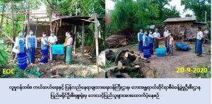 လူမှုဝန်ထမ်း၊ ကယ်ဆယ်ရေးနှင့် ပြန်လည်နေရာချထားရေးဝန်ကြီးဌာန၊ ဘေးအန္တရာယ်ဆိုင်ရာ စီမံခန့်ခွဲမှုဦးစီးဌာန၊ ပြည်ခရိုင်ဦးစီးမှူးရုံးမှ တာဝန်ရှိသူများသည် ပြည်မြို့နယ်၊ မှော်ဇာ ကျေးရွာအုပ်စု၊ လင်းရွာကျေးရွာနှင့် ကြခတ်ကျေးရွာအုပ်စု၊ ထန်းကဲကျေးရွာတို့၌ (၁၈-၉-၂၀၂၀)ရက်နေ့၊ (၁၇:၃၀)နာရီအချိန်တွင် မိုးသက်လေပြင်းတိုက်ခတ်ခဲ့ပြီး မန်ကျည်းပင်နှင့် ကုက္ကိုပင်ပြိုလဲမှုကြောင့် သစ်ပင်ပိပြိုလဲနေအိမ်(၂)လုံးအတွက် အိမ်ဆောက်ပစ္စည်းဖိုး ထောက်ပံ့ငွေ (၂၀၀,၀၀၀/-)ကျပ်၊ လူဦးရေ(၆)ဦးအတွက် ဆန်ရိက္ခာဖိုးထောက်ပံ့ငွေ (၁၂,၆၀၀/-)ကျပ်၊ စုစုပေါင်းထောက်ပံ့ငွေ (၂၁၂,၆၀၀/-)ကျပ်နှင့် ကယ်ဆယ်ရေးပစ္စည်း (၁၆)မျိုး (၂)အိမ်ထောင်စာတို့အား (၂၀-၉-၂၀၂၀)ရက်နေ့၊ (၀၉:၀၀)နာရီအချိန်တွင် ကျေးရွာအုပ်ချုပ် ရေးမှူးတို့နှင့်အတူ ဘေးသင့်ပြည်သူများထံ လက်ဝယ်အရောက် သွားရောက်ထောက်ပံ့ ပေးအပ်ခဲ့ကြောင်း သတင်းရရှိပါသည်။