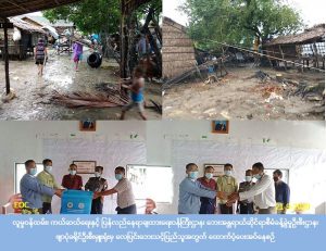 လူမှုဝန်ထမ်း၊ ကယ်ဆယ်ရေးနှင့် ပြန်လည်နေရာချထားရေးဝန်ကြီးဌာန၊ ဘေးအန္တရာယ်ဆိုင်ရာစီမံခန့်ခွဲမှုဦးစီးဌာန၊ ဖျာပုံခရိုင်ဦးစီးမှူးရုံးမှတာဝန်ရှိသူများသည် ဖျာပုံမြို့နယ်၊ အမာမြို့၊ နောက်မီးကျေးရွာအုပ်စု၊ မင်္ဂလာသောင်တန်းကျေးရွာတွင် (၂၀-၉- ၂၀၂၀) တွင်လေပြင်းတိုက်ခတ်ပြီး ပင်လယ်ဒီရေမြင့်မှုကြောင့် ပြိုကျပျက်စီးနေအိမ် (၈) လုံးအတွက် အိမ်ဆောက်ပစ္စည်းဖိုးငွေ (၈၀၀,၀၀ဝ) ကျပ်၊ လူဦးရေ (၄၃) ဦးအတွက် ဆန်ရိက္ခာ (၇) ရက်စာငွေ (၉၀,၃၀ဝ) ကျပ်၊ စုစုပေါင်းငွေ (၈၉၀,၃၀ဝ) ကျပ်နှင့် ကယ်ဆယ်ရေးပစ္စည်း (၁၆) မျိုး (၁) အိမ်ထောင်စာ (၃၄,၇၅၃) ကျပ်အားထောက်ပံ့ခဲ့ခြင်းနှင့် ပင်လယ်ဒီရေမြင့်တက်၍ ဒီရေလှိုင်းရိုက်ခတ်မှုကြောင့် တစ်စိတ်တစ်ပိုင်းပျက်စီးနေအိမ် (၄၂) လုံးအတွက် တန်ဖိုးငွေ (၁,၂၆၀,၀၀ဝ) ကျပ်၊ လူဦးရေ (၁၇၂) ဦးအတွက် ဆန်ရိက္ခါ (၇) ရက်စာငွေ (၃၆၁,၂၀ဝ) ကျပ်၊ စုစုပေါင်းငွေ (၁,၆၂၁,၂၀ဝ) ကျပ်အား (၂၁-၉-၂၀၂၀) ရက်နေ့ (၄:၃၀) နာရီအချိန်တွင် နောက်မီးရပ်ကွက်ကျေးရွာအုပ်ချုပ်ရေးရုံးတွင် ရပ်ကွက်ကျေးရွာအုပ်ချုပ်ရေးမှူးနှင့် တာဝန်ရသူများ၏ရှေ့မှောက်၌ ဘေးသင့်ပြည်သူများ၏ လက်ဝယ်သို့ ထောက်ပံ့ပေးအပ်ခဲ့ပါကြောင်း သတင်းရရှိပါသည်။