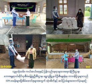 လူမှုဝန်ထမ်း၊ ကယ်ဆယ်ရေးနှင့် ပြန်လည်နေရာချထားရေးဝန်ကြီးဌာန၊ ဘေးအန္တရာယ်ဆိုင်ရာစီမံခန့်ခွဲမှုဦးစီးဌာန၊ ရွှေကူမြို့နယ်ဦးစီးမှူးရုံးမှ တာဝန်ရှိသူများသည် (၂၂-၉-၂၀၂၀) ရက်နေ့၊ နံနက် (၁၀း၃၀) နာရီအချိန်တွင် ရွှေကူမြို့၊ နှစ်ခြင်း IDPs စခန်းရှိ အိမ်ထောင်စု (၈၄) စု၊ လူဦးရေ (၃၀၆) ဦးတို့အတွက် ထုံး (၁၀) အိတ်၊ ဆပ်ပြာ (၃၀၆) ခဲနှင့် ကက်သလစ်IDPsစခန်းရှိ အိမ်ထောင်စု (၄၂) စု၊ လူဦးရေ (၁၇၆) ဦးတို့အတွက် ထုံး (၁၀) အိတ်၊ ဆပ်ပြာ (၁၇၆) ခဲ စုစုပေါင်း ထုံး (၂၀) အိတ်၊ ဆပ်ပြာ (၄၈၂) ခတို့ကို ထောက်ပံ့ပေးအပ်ခဲ့ပါကြောင်း သတင်းရရှိပါသည်။