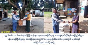 လူမှုဝန်ထမ်း၊ ကယ်ဆယ်ရေးနှင့် ပြန်လည်နေရာချထားရေးဝန်ကြီးဌာန၊ ဘေးအန္တရာယ်ဆိုင်ရာစီမံခန့်ခွဲမှုဦးစီးဌာန၊ ဗန်းမော်ခရိုင်ဦးစီးမှူးရုံးမှ တာဝန်ရှိသူများသည် (၂၂-၉-၂၀၂၀) ရက်နေ့၊ နံနက် (၁၁:၀၀) နာရီအချိန်တွင် မိုးမောက်မြို့နယ်၊ မိုးမောက်မြို့၊ နှစ်ခြင်းဘုရားကျောင်း IDPs စခန်းမှ အိမ်ထောင်စု (၄၀၄) စု၊ လူဦးရေ (၁၉၀၅) ဦးအတွက် paris ဆပ်ပြာ (၁၉၀၅) ခဲ နှင့် ထုံးအိတ် (၁၀) အိတ်နှင့် ကက်သလစ် IDPs စခန်းမှ အိမ်ထောင်စု (၈၈) စု၊ လူဦးရေ (၄၁၄) ဦးတို့အတွက် ဆပ်ပြာ (၄၁၄)ခဲ နှင့်ထုံးအိတ် (၁၀) အိတ်ကို ထောက်ပံ့ပေးအပ်ခဲ့ပါကြောင်း သတင်းရရှိပါသည်။