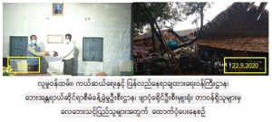 လူမှုဝန်ထမ်းကယ်ဆယ်ရေးနှင့်ပြန်လည်နေရာချထားရေးဝန်ကြီးဌာန၊ ဘေးအန္တရာယ်ဆိုင်ရာစီမံခန့်ခွဲမှုဦးစီးဌာန၊ ဖျာပုံခရိုင်ဦးစီးမှူးရုံးမှတာဝန်ရှိသူများသည် ဖျာပုံမြို့နယ်၊ အမာမြို့၊နောက်မီးကျေးရွာအုပ်စု၊ မင်္ဂလာသောင်တန်းကျေးရွာ တွင်(၂၀-၉- ၂၀၂၀) တွင်လေပြင်းတိုက်ခတ်ပြီး ပင်လယ်ဒီရေမြင့်တက်၍ ဒီရေလှိုင်းရိုက်ခတ်မှုကြောင့်တစ်စိတ်တစ်ဒေသပျက်စီးနေအိမ်(၃)လုံးအတွက်တန်ဖိုး(၉၀၀၀ဝိ/-)၊ လူဦးရေ(၇)ဦးအတွက် ဆန်ရိက္ခါ(၇)ရက်စာငွေ(၁၄၇၀ဝိ/-)၊စုစုပေါင်း ငွေ(၁၀၄၇၀ဝိ/-)အား(၂၂-၉-၂၀၂၀) ရက်နေ့ (၄:၃၀)နာရီအချိန်တွင် နောက်မီးရပ်ကွက်ကျေးရွာအုပ်ချုပ်ရေးရုံးတွင်ရပ်ကွက်ကျေးရွာအုပ်ချုပ်ရေးမှူးနှင့်တာဝန်ရှိသူများ၏ရှေ့မှောက်၌ ဘေးသင့်ပြည်သူများ၏လက်ဝယ်သို့ထောက်ပံ့ပေးအပ်ခဲ့ကြောင်း သတင်းရရှိပါသည်။