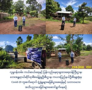လူမှုဝန်ထမ်း၊ ကယ်ဆယ်ရေးနှင့် ပြန်လည်နေရာချထားရေးဝန်ကြီးဌာန၊ ဘေးအန္တရာယ်ဆိုင်ရာစီမံခန့်ခွဲမှုဦးစီးဌာန၊ ကယားပြည်နယ်ဦးစီးမှူးရုံးမှ တာဝန်ရှိသူများသည် (၂၃-၉-၂၀၂၀) ရက်နေ့တွင် ဖရူဆိုမြို့နယ်၊ တော်ခူကျေးရွာအုပ်စု၊ နန်းခွီးခိုကျေးရွာ၊ ပလိုဒေးကျေးရွာ၊ တော်ခူရွာသစ်ကျေးရွာနှင့် မာခရော်ရှေ့ကျေးရွာအုပ်စု၊ ပရယ်တော်ကျေးရွာများရှိ ပြည်သူများအား Covid-19 ကူးစက်ရောဂါ ပျံ့နှံ့မှုများမဖြစ်ပွားစေရန်နှင့် သဘာဝဘေးအန္တရာယ်နှင့်စပ်လျဉ်းသည့် ဆောင်ရန်၊ ရှောင်ရန်များကို အသိပညာဖြန့်ဝေခဲ့ပါကြောင်း သတင်းရရှိပါသည်။