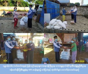 လူမှုဝန်ထမ်း၊ ကယ်ဆယ်ရေးနှင့် ပြန်လည်နေရာချထားရေးဝန်ကြီးဌာန၊ ဘေးအန္တရာယ်ဆိုင်ရာစီမံခန့်ခွဲမှုဦးစီးဌာန၊ ဗန်းမော်ခရိုင်ဦးစီးမှူးရုံးမှ တာဝန်ရှိသူများသည် COVID-19 ကာကွယ်ရန် လူ (၁) ဦးလျှင် ဆပ်ပြာ (၁) ခဲနှုန်း၊ စခန်း (၁) ခုလျှင် ထုံး (၁၀) အိတ် နှုန်းဖြင့် လွယ်ဂျယ်မြို့ရှိ လီဆူ IDPs စခန်းတွင်အိမ်ထောင်စု (၂၁၁) စု၊ လူဦးရေ (၁,၂၁၅) ဦး၊ နှစ်ခြင်း IDPs စခန်းတွင်အိမ်ထောင်စု (၃၈) စု၊ လူဦးရေ (၂၄၁) ဦး၊ RC Idps စခန်းတွင် အိမ်ထောင်စု (၆၇) စု၊ လူဦးရေ (၄၁၈) ဦး၊ ဆိုင်းဂျာ Idps စခန်းတွင် အိမ်ထောင်စု (၄၄) စု၊ လူဦးရေ (၂၇၄) ဦး၊ ညောင်နှစ်ပင် Idps စခန်းတွင် အိမ်ထောင်စု (၄၈) စု၊ လူဦးရေ (၂၉၃) ဦး၊ ထန်းည IDPs စခန်းတွင် အိမ်ထောင်စု (၂၄) စု၊ လူဦးရေ (၁၁၈) ဦး၊ စုစုပေါင်းအိမ်ထောင်စု (၄၃၂) ဦး၊ လူဦးရေ (၂,၅၅၉) ဦး၊ တို့အတွက် ဆပ်ပြာ (၂,၅၅၉) ခဲ၊ ထုံး (၆၀) အိတ်တို့အား (၂၄-၉-၂၀၂၀) ရက်နေ့ (၁၁:၀၀) နာရီအချိန်တွင် IDPs စခန်းနေမိသားစုများ၏လက်ဝယ်အရောက် ထောက်ပံ့ပေးအပ်ခဲ့ပါကြောင်း သတင်းရရှိပါသည်။