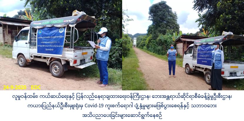 လူမှုဝန်ထမ်း၊ ကယ်ဆယ်ရေးနှင့် ပြန်လည်နေရာချထားရေးဝန်ကြီးဌာန၊ ဘေးအန္တရာယ်ဆိုင်ရာစီမံခန့်ခွဲမှုဦးစီးဌာန၊ ကယားပြည်နယ်ဦးစီးမှူးရုံးမှ တာဝန်ရှိသူများသည် (၂၄-၉-၂၀၂၀) ရက်နေ့တွင် ဒီးမော့ဆိုမြို့နယ်၊ လွိုင်နန်းဖကျေးရွာအုပ်စု၊ တေးဂေခိုကျေးရွာ၊ စီစန်းခိုကျေးရွာ၊ လော်ခိုသာကျေးရွာ၊ လိုဘေခိုကျေးရွာနှင့် ဆိုလဖဲခိုကျေးရွာများရှိ ပြည်သူများအား Covid-19 ကူးစက်ရောဂါ ပျံ့နှံ့မှုများမဖြစ်ပွားစေရန်နှင့် သဘာဝဘေးအန္တရာယ်နှင့်စပ်လျဉ်းသည့် ဆောင်ရန်၊ ရှောင်ရန်များကို အသိပညာဖြန့်ဝေခဲ့ပါကြောင်း သတင်းရရှိပါသည်။