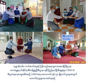 လူမှုဝန်ထမ်း၊ ကယ်ဆယ်ရေးနှင့် ပြန်လည်နေရာချထားရေးဝန်ကြီးဌာန၊ ဘေးအန္တရာယ်ဆိုင်ရာစီမံခန့်ခွဲမှုဦးစီးဌာန၊ ရခိုင်ပြည်နယ်ဦးစီးမှူးရုံးမှ တာဝန်ရှိသူများသည် COVID-19 စီးပွားရေးကုစားမှုအစီအစဥ် (CERP)အရ စားသောက်ကုန် (၅) မျိုး ဝယ်ယူရန် အိမ်ထောင်စု (၁) စုလျှင် (၄၀၀၀၀/-) ကျပ်နှုန်းဖြင့် စစ်တွေမြို့နယ်၊ မဏိရတနာကျောင်းတိုက်တွင် ရောက်ရှိခိုလှုံနေသော အိမ်ထောင်စု (၄၃)စု၊ လူဦးရေ (၁၉၄)ဦးအတွက် ထောက်ပံ့ငွေ (၁၇၂၀၀၀၀/-)ကျပ် ကိုလည်းကောင်း၊ ဓမ္မရာမကျောင်းတိုက်တွင် ရောက်ရှိခိုလှုံနေသော အိမ်ထောင်စု (၉၁)စု၊ လူဦးရေ (၄၀၂)ဦးအတွက် ထောက်ပံ့ငွေ (၃၆၄၀၀၀၀/-)ကျပ်ကိုလည်းကောင်း၊ ဘုရားများသိမ်တွင် ရောက်ရှိခိုလှုံနေသော အိမ်ထောင်စု (၈၆)စု ၊ လူဦးရေ (၃၇၅)ဦးအတွက် ထောက်ပံ့ငွေ (၃၄၄၀၀၀၀/-)ကျပ်ကိုလည်းကောင်း၊ ဒက္ခေါင်း ကျောင်းတိုက်တွင် ရောက်ရှိခိုလှုံလျက်ရှိသော အိမ်ထောင်စု (၃၂)စု၊ လူဦးရေ (၁၁၄) ဦးအတွက် ထောက်ပံ့ငွေ (၁၂၈၀၀၀၀/-)ကျပ်ကိုလည်းကော်း၊ ဆည်ကြီးကျောင်းတိုက်တွင် ရောက်ရှိခိုလှုံလျက်ရှိသော အိမ်ထောင်စု (၁၁)စု၊ လူဦးရေ (၄၈)ဦးအတွက် (၄၄၀၀၀၀/-)ကျပ်ကိုလည်းကောင်း၊ ကယုချောင်း ကျောင်းတိုက်တွင် ရောက်ရှိခိုလှုံလျက်ရှိသော အိမ်ထောင်စု (၂၂)စု၊ လူဦးရေ (၇၄)ဦးအတွက် ထောက်ပံ့ငွေ (၈၈၀၀၀၀/-)ကျပ် ကိုလည်းကောင်း၊ အမျိုးသားကျောင်းတိုက်တွင် ရောက်ရှိခိုလှုံလျက်ရှိသော အိမ်ထောင်စု (၄၀)စု၊ လူဦးရေ (၁၁၄)ဦးအတွက် ထောက်ပံငွေ (၁၆၀၀၀၀၀/-)ကျပ်ကိုလည်းကောင်း၊ မဟာမုနိဗုဒ္ဓဝိဟာရကျောင်းတိုက်တွင် ရောက်ရှိခိုလှုံလျက်ရှိသော အိမ်ထောင်စု (၃၇)စု၊ လူဦးရေ (၁၅၁)ဦးအတွက် ထောက်ပံ့ငွေ (၁၄၈၀၀၀၀/-)ကျပ်လည်းကောင်း၊ အလိုတော်ပြည့်ကျောင်း တိုက်တွင် ရောက်ရှိခိုလှုံလျက်ရှိသော အိမ်ထောင်စု (၁၄၄)စု၊ လူဦးရေ (၄၄၃)ဦးအတွက် ထောက်ပံ့ငွေ (၅၇၆၀၀၀၀/-)ကျပ် တို့နှင့် နန်းရွှေဂူကျောင်းတိုက်တွင် ရောက်ရှိခိုလှုံလျက်ရှိသော အိမ်ထောင်စု (၇၅)စု၊ လူဦးရေ(၂၃၆)ဦးအတွက် ထောက်ပံငွေ (၃၀၀၀၀၀ဝိ/-)ကျပ်တို့ကို (၂၅-၉-၂၀၂၀)ရက်နေ့တွင် ထောက်ပံ့ပေးအပ်ခဲ့ပါကြောင်း သတင်းရရှိပါသည်။
