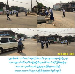 လူမှုဝန်ထမ်း၊ ကယ်ဆယ်ရေးနှင့် ပြန်လည်နေရာချထားရေးဝန်ကြီးဌာန၊ ဘေးအန္တရာယ်ဆိုင်ရာစီမံခန့်ခွဲမှုဦးစီးဌာန၊ မိုင်းဆတ်ခရိုင်ဦးစီးမှူးရုံးမှ တာဝန်ရှိသူများသည် (၂၆-၉-၂၀၂၀) ရက်နေ့တွင် မိုင်းဆတ်မြို့နယ်၊ မယ်ဆွမ်(တောင်) ရပ်ကွက်၊ မယ်ဆွမ်(မြောက်)ရပ်ကွက်၊ ဝမ်ကျောင်းရပ်ကွက်၊ နောင်ဟီးရပ်ကွက်၊ မြို့သစ်ရပ်ကွက်၊ ဝိန်းနေရပ်ကွက်၊ ဝိန်းဝိုင်ရပ်ကွက်၊ ကျဒယ်ရပ်ကွက်၊ နားကောရပ်ကွက်၊ နားမရပ်ကွက်နှင့် နောင်ပိုရွာတို့၌ Covid-19 ကူးစက်ရောဂါ ပျံ့နှံ့မှုများမဖြစ်ပွားစေရန် ပြည်သူများ လိုက်နာရမည့် ကျန်းမာရေးအမူအကျင့်များ အသိပညာပေးခြင်းနှင့် သဘာဝဘေးဆိုင်ရာ အသိပညာပေးခြင်းများကို Hand Speaker အသံချဲ့စက်များဖြင့် လှည့်လည်ဟောပြောခြင်း၊ Mask နှင့် အသိပညာပေးလက်ကမ်းစာစောင်များ ဖြန့်ဝေပေးခြင်းတို့အား ဆောင်ရွက်ခဲ့ပါကြောင်း သတင်းရရှိပါသည်။
