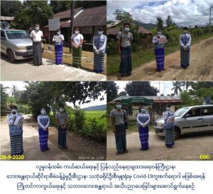 လူမှုဝန်ထမ်း၊ ကယ်ဆယ်ရေးနှင့် ပြန်လည်နေရာချထားရေးဝန်ကြီးဌာန၊ ဘေးအန္တရာယ်ဆိုင်ရာစီမံခန့်ခွဲမှုဦးစီးဌာန၊ သထုံခရိုင်ဦးစီးမှူးရုံးမှ တာဝန်ရှိသူများသည် (၂၆-၉-၂၀၂၀) ရက်နေ့၊ (၀၉:၃၀)နာရီအချိန်မှ (၁၃:၀၀) နာရီအချိန်ထိ မွန်ပြည်နယ် သထုံခရိုင်၊ သထုံမြို့နယ်၊ အောင်းစိုင်တောင်အရှေ့ကျေးရွာ သင်တောကျေးရွာနှင့် ကမာဘောင်ကျေးရွာတို့တွင် Covid-19 ရောဂါကူးစက် ပျံ့နှံ့မှုများမဖြစ်ပွားစေရေး နှင့် မိုးရာသီကာလ အတွင်းဖြစ်ပွားလေ့ရှိသည့် မိုးကြိုးဘေး၊ မုန်တိုင်းဘေး၊ ရေဘေးနှင့် မြေပြိုဘေး အန္တရာယ်များ ကြိုတင်ပြင်ဆင်ရေး အသိပညာပေးဟောပြောခြင်းအားအသံချဲ့စက်များဖြင့် လည်းကောင်း၊ ရေဘေးအန္တရာယ် ကြိုတင် ကာကွယ်ရေးပြည်သူသို့ အသိပေးနှိုးဆော်ခြင်းအား Handspeaker များဖြင့်လည်းကောင်း အသိပေးနှိုးဆော်ကြေငြာခဲ့ပါကြောင်း သတင်းရရှိပါသည်။