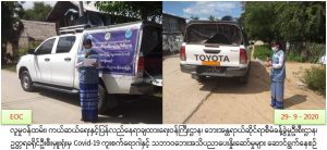 လူမှုဝန်ထမ်း၊ ကယ်ဆယ်ရေးနှင့်ပြန်လည်နေရာချထားရေးဝန်ကြီးဌာန၊ ဘေးအန္တရာယ်ဆိုင်ရာစီမံခန့်ခွဲမှုဦးစီးဌာန၊ ပြည်ထောင်စုနယ်မြေ၊ နေပြည်တော်၊ ဥတ္တရခရိုင်ဦးစီးမှူးရုံးမှ တာဝန်ရှိသူများသည် (၂၉-၉-၂၀၂၀) ရက်နေ့၊ (၁၀:၀၀) အချိန်မှ (၁၅:၀၀) အချိန်အထိ ပြည်သူများအား COVID-19ရောဂါကူးစက်ပြန့်နှံ့မှုများမဖြစ်ပွားစေရန်အတွက် သိရှိလိုက်နာဆောင်ရွက်ရမည့်အချက်များနှင့် မိုးရာသီကာလအတွင်း ဖြစ်ပွားတတ်သည့် ရေဘေးအန္တရာယ်နှင့် မိုးကြိုးဘေးအန္တရာယ်ဆိုင်ရာ ဆောင်ရန်/ ရှောင်ရန်အချက်များနှင့်ပတ်သက်၍ ပုဗ္ဗသီရိမြို့နယ် ၊ ကျည်တောင်ကန် အမှတ်(၁)ရပ်ကွက်၊ အမှတ်(၂)ရပ်ကွက်၊ အမှတ်(၃)ရပ်ကွက်၊ အမှတ်(၄)ရပ်ကွက်၊ အမှတ်(၅)ရပ်ကွက်၊ အမှတ်(၆)ရပ်ကွက်၊ တပင်ရွှေထီးရပ်ကွက်၊ ဆင်ဖြူရှင်ရပ်ကွက်၊ ဇဝနဒီပရပ်ကွက်နှင့် ရတနာဒီပရပ်ကွက်များ အတွင်းရှိ ပြည်သူများသို့ ထိရောက်စွာအသိပညာပေးခြင်းများ ဆောင်ရွက်ခဲ့ကြောင်း သတင်းရရှိပါသည်။