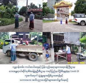 လူမှုဝန်ထမ်း၊ ကယ်ဆယ်ရေးနှင့် ပြန်လည်နေရာချထားရေးဝန်ကြီးဌာန၊ ဘေးအန္တရာယ်ဆိုင်ရာစီမံခန့်ခွဲမှုဦးစီးဌာန၊ ကရင်ပြည်နယ်ဦးစီးမှူးရုံးမှ တာဝန်ရှိသူများသည် (၃၀-၉-၂၀၂၀)ရက်နေ့၊ နံနက်(၀၈:၀၀)နာရီချိန်မှ နေ့လည်(၁၂:၀၀)နာရီချိန်ထိ ဘားအံမြို့နယ်၊ အောင်မင်္ဂလာရပ်ကွက် ၊ ကော့ကျိုက်ကျေးရွာ၊ ကော့ကဒစ်ကျေးရွာ ၊ တော်ပုံကျေးရွာ ၊ တောင်စွန်းကျေးရွာ ၊ ကော့ဒါန်းကျေးရွာ ၊ မွန်ဆရီးကျေးရွာ ၊ ကော့မူနုတ်ကျေးရွာ ၊ ကော့ဝုန်းကျေးရွာများရှိ ပြည်သူများအား COVID-19 ကူးစက်မြန်ရောဂါ ပြန့်ပွားမှုများမဖြစ်ပွားစေရန်အတွက် သိရှိလိုက်နာရမည့် အချက်များနှင့် မိုးရာသီကာလအတွင်း ဖြစ်ပွားတက်သော သဘာဝဘေးအန္တရာယ်များဖြစ်သည့် ရေဘေး၊ မိုးကြိုးဘေး၊ လေပြင်းဘေးများနှင့် စပ်လျဉ်း၍ ဆောင်ရန်/ ရှောင်ရန်အချက်များအား လော်စပီကာဖြင့် အသိပညာပေးဆောင်ရွက်ခဲ့ပြီး လက်ကမ်းစာစောင်များလည်း ဖြန့်ဝေပေးခဲ့ပါ ကြောင်း သတင်းရရှိပါသည်။