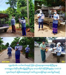 လူမှုဝန်ထမ်း၊ ကယ်ဆယ်ရေးနှင့် ပြန်လည်နေရာချထားရေးဝန်ကြီးဌာန၊ ဘေးအန္တရာယ်ဆိုင်ရာစီမံခန့်ခွဲမှုဦးစီးဌာန၊ ကော့ကရိတ်ခရိုင်ဦးစီးမှူးရုံးမှ တာဝန်ရှိသူများသည် (၃၀-၉-၂၀၂၀) ရက်နေ့တွင် (၀၉:၀၀)နာရီမှ (၁၂:၀၀)နာရီ အချိန်ထိ ကော့ကရိတ်မြို့နယ်အတွင်းရှိ နန်းကော်တိုးကျေးရွာ၊ ဝင်းကြီးကျေးရွာနှင့် ကော့ကရိတ်မြို့ပေါ်ရပ်ကွက်များဖြစ်သည့် အမှတ်(၂)၊ အမှတ်(၅)တို့၌ COVID-19 ကူးစက်မြန်ရောဂါ ပြန့်ပွားမှုများ မဖြစ်ပွားစေရန်အတွက် သိရှိလိုက်နာရမည့် ဆောင်ရန်/ရှောင်ရန် အချက်များအား အသံချဲ့စက်ဖြင့် ပြည်သူလူထု အတွင်း အသိပညာပေးဆောင်ရွက်ခဲ့ပြီး လက်ကမ်းစာစောင်များနှင့် Mask များ ဖြန့်ဝေပေးခြင်းတို့ကိုလည်း ဆောင်ရွက်ခဲ့ပါကြောင်း သတင်းရရှိပါသည်။