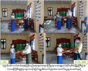 လူမှုဝန်ထမ်း၊ ကယ်ဆယ်ရေးနှင့်ပြန်လည်နေရာချထားရေးဝန်ကြီးဌာန၊ ဘေးအန္တရာယ်ဆိုင်ရာစီမံခန့်ခွဲမှုဦးစီးဌာန၊ ကသာခရိုင်ဦးစီးမှူးရုံးမှ ကသာခရိုင်၊ ကသာမြို့နယ်အတွင်းရှိ ပိန္နဲကုန်းရပ်ကွက်၊ တောင်ပိုင်းရပ်ကွက်၊ ဇေယျာချောင်ရပ်ကွက်၊ သူဌေးကုန်းရပ်ကွက်၊ မိဿလင်းအုပ်စု၊ ကျောက်ထုံးကြီးအုပ်စု၊ ဝေဆွယ်ကျေးရွာတို့တွင် (၃၀.၉.၂၀၂၀)နှင့် (၁.၁၀.၂၀၂၀) ရက်နေ့တို့၌ ဧရာဝတီမြစ်ရေမြင့်တက်မှူကြောင့် ရေဝင်ပြောင်းရွှေ့အိမ်ထောင်စု(၇၄)စုမှ လူဦးရေ(၄၀၈)ဦးတို့အတွက် ဆန်ရိက္ခာဖိုးထောက်ပံ့ငွေ(၈၅၆၈၀၀ိ/)၊ အဝတ်Mask(၁၀၆)ခုနှင့် ဆပ်ပြာ(၁၂)တောင့်တို့အား (၂.၁၀.၂၀၂၀) ရက်နေ့(၁၆း၅၀) နာရီချိန်တွင်လည်းကောင်း၊ (၃.၁၀.၂၀၂၀) ရက်နေ့ (၁၂း၁၅) နှင့်(၁၄း၀၀)နာရီချိန်တို့တွင်လည်းကောင်း၊ (၄.၁၀.၂၀၂၀) ရက်နေ့(၁၄း၀၀)နာရီချိန်တွင်လည်းကောင်း၊ (၅.၁၀.၂၀၂၀)ရက်နေ့ (၁၁း၃၀)နှင့် (၁၅း၀၀)နာရီတို့တွင်လည်းကောင်း သက်ဆိုင်ရာအုပ်ချုပ်ရေးမှူးမှတဆင့် ဘေးသင့်ပြည်သူထံသို့ထောက်ပံ့ပေးအပ်ခဲ့ကြောင်း သတင်းရရှိပါသည်။
