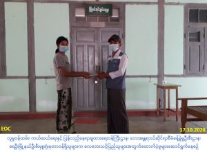 လူမှုဝန်ထမ်း၊ ကယ်ဆယ်ရေးနှင့် ပြန်လည်နေရာချထားရေးဝန်ကြီးဌာန၊ ဘေးအန္တရာယ်ဆိုင်ရာစီမံခန့်ခွဲမှုဦးစီးဌာန၊ ရေဦးမြို့နယ်ဦးစီးမှူးရုံးမှတာဝန်ရှိသူများသည် (၁၆-၁၀-၂၀၂၀) ရက်နေ့ (၁၆:၃၀)နာရီတွင် တန့်ဆည်မြို့နယ်၊ မူးဂွကျေးရွာအုပ်စု၊ မူးဂွကျေးရွာ၌ လေဘေးဖြစ်ပွားခဲ့သော ကြောင့် ထိခိုက်ပျက်စီးအိမ်ခြေ (၁)လုံးအတွက် အိမ်ဆောက်ပစ္စည်းဖိုးထောက်ပံ့ငွေ(၃၀,၀၀၀/-) ကျပ်နှင့် ဘေးသင့်လူဦးရေ(၇)ဦးအတွက် ဆန်ရိက္ခာ(၇)ရက်စာဖိုးထောက်ပံ့ငွေ(၁၄,၇၀၀/-) ကျပ်တို့အား (၁၇-၁၀-၂၀၂၀) ရက်နေ့ (၁၂:၀၀) နာရီတွင် ဘေးသင့်ပြည်သူထံသို့ ထောက်ပံ့ပေးအပ်ခဲ့ပါကြောင်း သတင်းရရှိပါသည်။