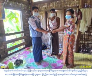 လူမှုဝန်ထမ်း၊ ကယ်ဆယ်ရေးနှင့် ပြန်လည်နေရာချထားရေးဝန်ကြီးဌာန၊ ဘေးအန္တရာယ်ဆိုင်ရာစီမံခန့်ခွဲမှုဦးစီးဌာန၊ ကောလင်းမြို့နယ်ဦးစီးမှူးရုံးမှတာဝန်ရှိသူများသည် ကောလင်းမြို့နယ်၊ ဥမှင်ကုန်းအုပ်စု၊ အိမ်တိုင်ပုံကျေးရွာတွင်(၁၆-၁၀-၂၀၂၀)ရက်နေ့၌ မိုးရွာသွန်းမှုကြောင့် မိုးကြိုးထိမှန်သေဆုံးသူ (၁)ဦးအတွက် ထောက်ပံ့ငွေကျပ်(၃၀၀,၀၀၀/-)အား (၁၇-၁၀-၂၀၂၀)ရက် နေ့(၁၃း၀၀)နာရီ အချိန်တွင် ကျန်ရစ်သူ၏ မိသားစုထံသို့ သွားရောက်ထောက်ပံ့ပေးအပ်ခဲ့ပါကြောင်း သတင်းရရှိပါသည်။