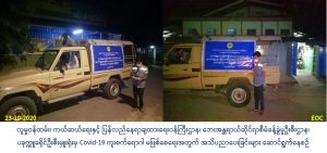 လူမှုဝန်ထမ်း၊ ကယ်ဆယ်ရေးနှင့် ပြန်လည်နေရာချထားရေးဝန်ကြီးဌာန၊ ဘေးအန္တရာယ်ဆိုင်ရာစီမံခန့်ခွဲမှုဦးစီးဌာန၊ ပခုက္ကူခရိုင်ဦးစီးမှူးရုံးမှ တာဝန်ရှိသူများသည် (၂၃-၁၀-၂၀၂၀) ရက်နေ့တွင် ပခုက္ကူမြို့ပေါ်ရပ်ကွက်များဖြစ်သည့် အမှတ် (၇/၈/၉) ရပ်ကွက်များ၌ လှည့်လည်၍ COVID-19 ရောဂါကူးစက်ပျံ့နှံ့မှုများ မဖြစ်ပွားစေရန် လိုက်နာရမည် ဆောင်ရန်/ ရှောင်ရန်အချက်များကို အသိပညာပေး ဆောင်ရွက်ခဲ့ပါကြောင်း သတင်းရရှိပါသည်။